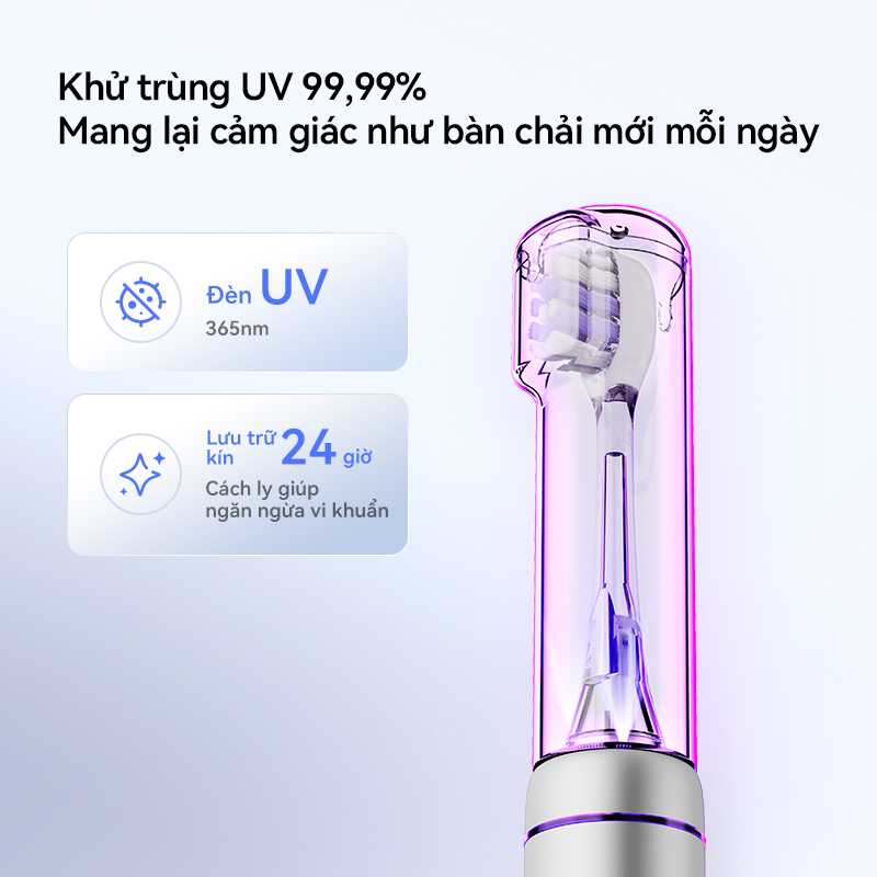 | Công nghệ | Khử khuẩn 99.9% bằng tia UV 365nm |