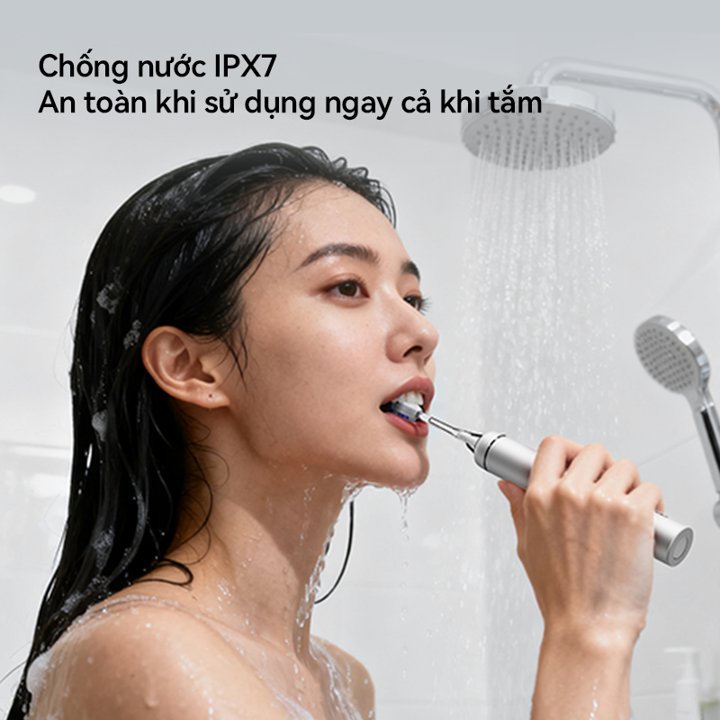 Với chỉ số chống nước IPX7, bàn chải điện Deerma YS01 vận hành bền bỉ ngay cả trong môi trường độ ẩm cao như phòng tắm hay nhà vệ sinh. Khả năng kháng nước mạnh mẽ này cho phép người dùng thoải mái rửa sạch thiết bị trực tiếp dưới vòi nước sau mỗi lần sử dụng mà không gây hư hại đến linh kiện bên trong. Sự bền bỉ của lớp vỏ bảo vệ đem lại cảm giác an tâm tuyệt đối, đồng thời duy trì tuổi thọ cho bàn chải trong suốt quá trình chăm sóc răng miệng hằng ngày.