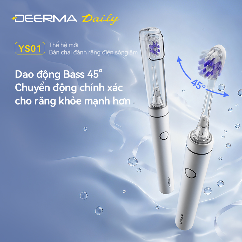 Bàn chải điện Deerma YS01 vận hành dựa trên cơ chế dao động góc 45°, tạo điều kiện để các sợi lông len lỏi và làm sạch sâu khu vực viền nướu. Đây là thiết kế mô phỏng chính xác kỹ thuật đánh răng khoa học do các chuyên gia nha khoa khuyên dùng, nhằm đánh bay mảng bám tích tụ tại những vị trí khó tiếp cận. Nhờ khả năng tác động chuẩn xác, sản phẩm duy trì sức khỏe răng miệng toàn diện, đảm bảo an toàn cho bề mặt men răng cũng như các vùng mô nướu nhạy cảm.