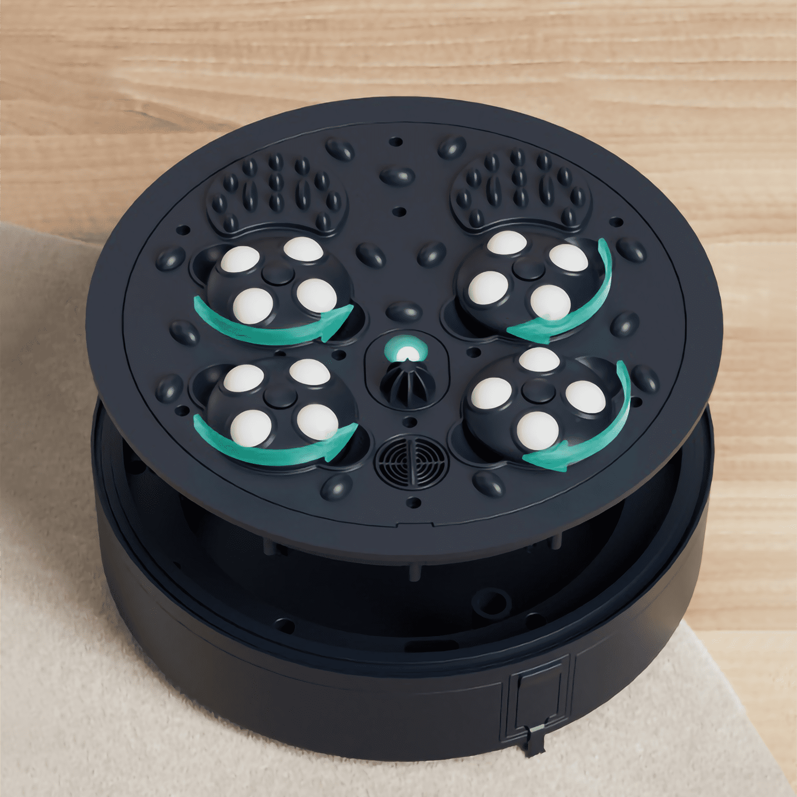 Bồn massage chân Philips PPM6501 được trang bị 4 con lăn xoay tiếp xúc diện rộng các huyệt đạo quan trọng dưới lòng bàn chân giúp massage lòng bàn chân, cùng thiết kế 2 vị trí đệm ở phần gót chân, kích thích và thư giãn cơ của toàn bộ bàn chân đem lại hiệu quả massage thư giãn để mang lại cảm giác thoải mái khi sử dụng. Đồng thời, mô phỏng chính xác thao tác xoa bóp trực tiếp bằng đầu ngón tay. Bên cạnh đó, con lăn xoay có thể tháo rời dễ dàng thuận lợi cho mỗi lần vệ sinh làm sạch