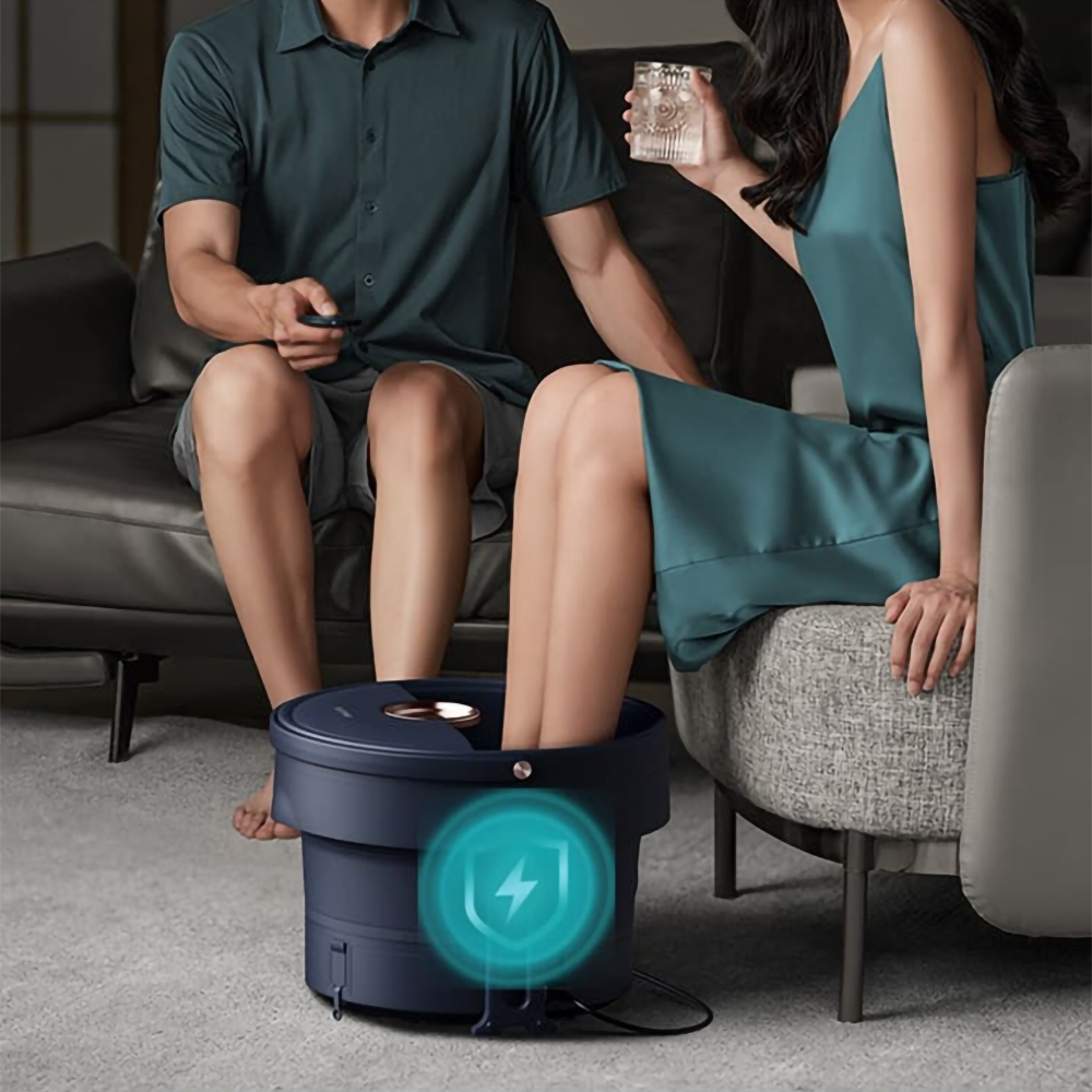 Được sản xuất từ chất liệu co giãn có độ bền cao, chống rò rỉ nước. Với thiết kế dạng gập, tùy biến giúp chiếc máy thu gọn và chỉ dày 12,5cm dễ dàng lắp đặt sử dụng và bảo quản mà không chiếm quá nhiều diện tích. Thao tác sử dụng máy cực kỳ đơn giản, người dùng chỉ cần châm nước đến vạch cố định, khởi động máy, chọn nhiệt độ thích hợp, máy sẽ tự động massage khi nước đạt đến nhiệt độ nhất định tận hưởng massage thư giãn với thời gian cố định 30 phút / 1 lần, giúp bảo vệ và nhắc nhở người dùng khi ngâm chân và massage quá lâu.