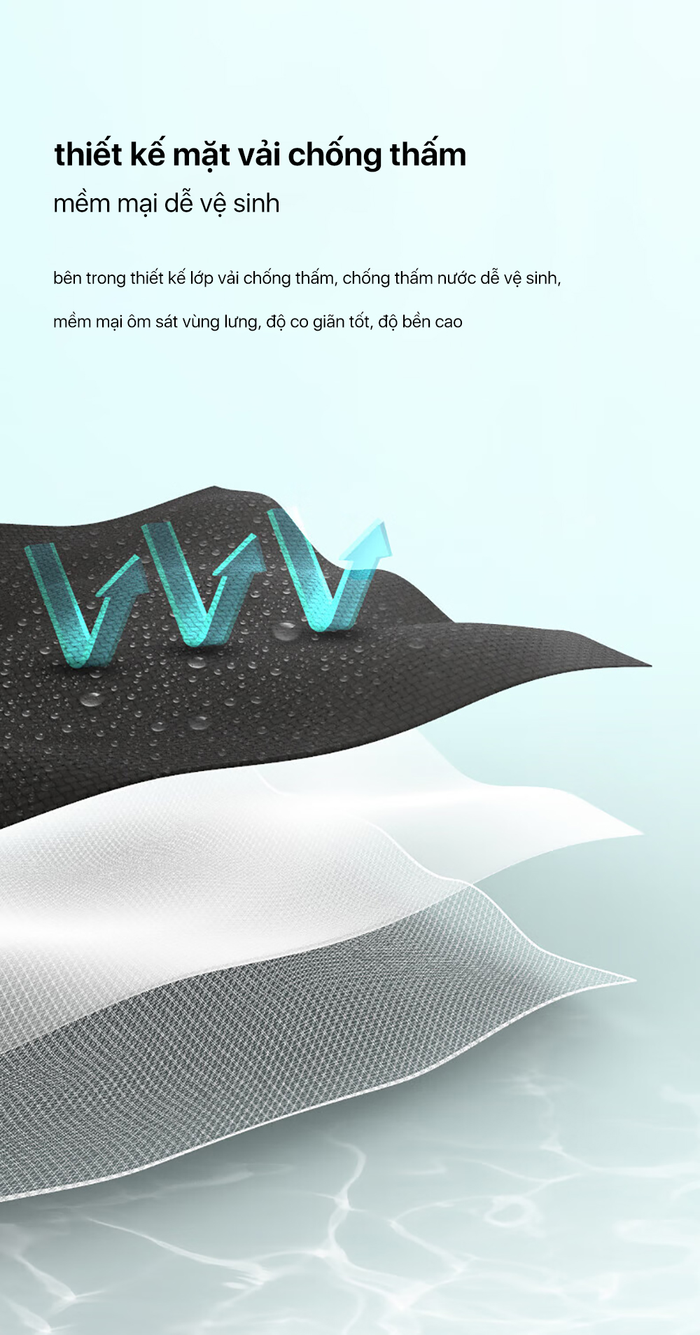 - Thiết kế mặt vải chống thấm, dễ vệ sinh