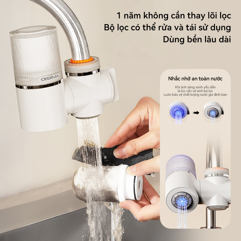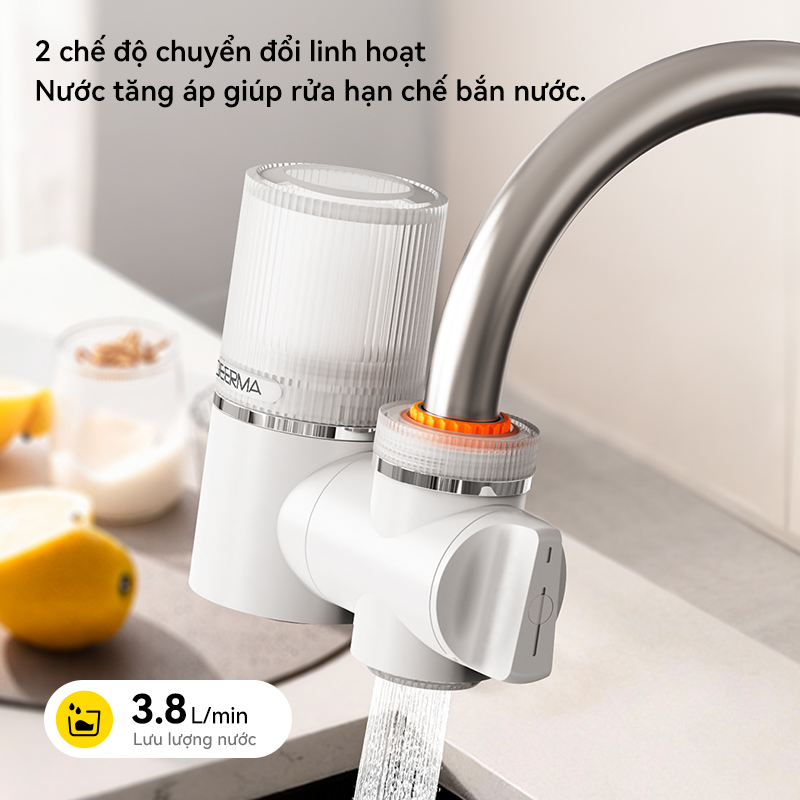 Thiết kế thông minh trên đầu vòi Deerma LT02 cho phép người dùng chuyển đổi linh hoạt giữa hai chế độ: nước sinh hoạt thông thường và nước sau lọc chỉ với thao tác đơn giản. Sự tách biệt này không chỉ đáp ứng chính xác nhu cầu tại từng thời điểm mà còn góp phần kéo dài tuổi thọ lõi lọc, đảm bảo tính tiện nghi và tiết kiệm tối đa trong mọi hoạt động hằng ngày.