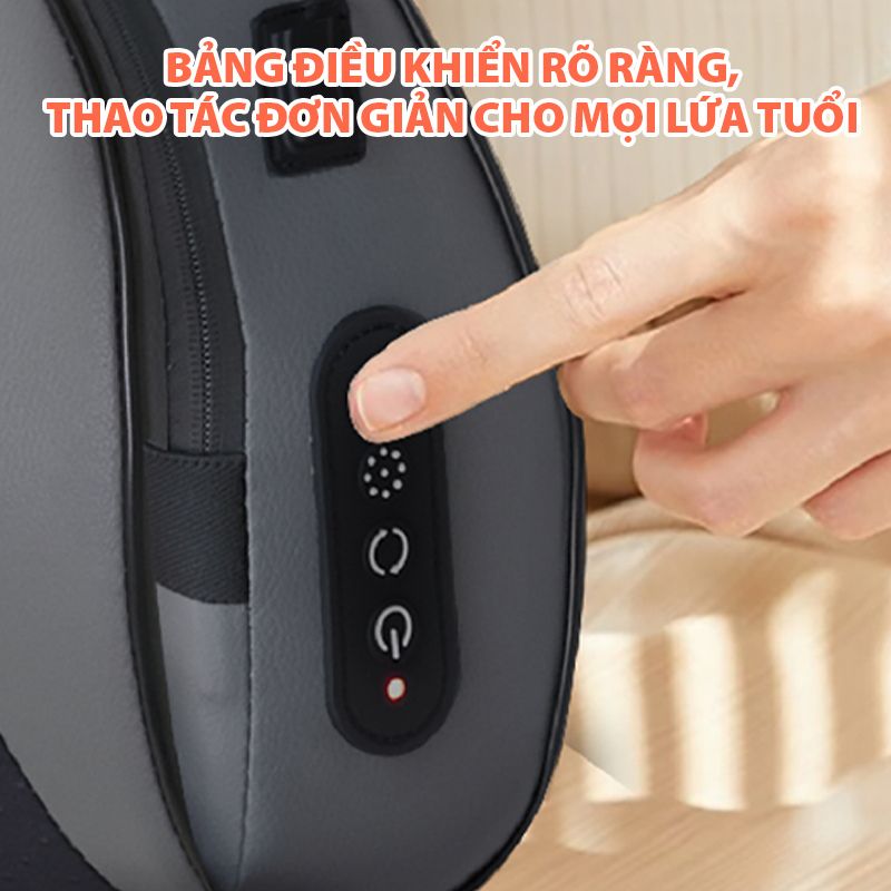 Hỗ trợ massage đa vùng, gối Bomidi MP1 Pro tác động hiệu quả lên cổ, vai và lưng – những khu vực thường xuyên chịu áp lực khi ngồi làm việc hoặc sử dụng thiết bị điện tử quá lâu. Cơ chế con lăn xoay hai chiều mô phỏng chuyển động bàn tay thật, đảo hướng liên tục để tránh tạo cảm giác lặp lại đơn điệu. Nhờ kết hợp chuyển động nhịp nhàng và lực ấn vừa đủ, vùng cơ được thư giãn sâu mà không gây tức hay đau nhức. Người dùng có thể linh hoạt điều chỉnh lực tác động tùy theo cảm giác cơ thể, giúp trải nghiệm massage dễ chịu, nhẹ nhàng nhưng vẫn đạt hiệu quả giảm mỏi rõ rệt sau mỗi chu kỳ sử dụng.