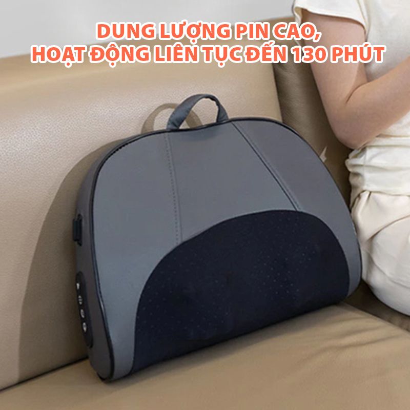 Được trang bị pin dung lượng 1800mAh, gối massage Bomidi MP1 Pro cho thời gian sử dụng liên tục lên đến 130 phút sau mỗi lần sạc đầy. Nhờ đó, thiết bị có thể hoạt động linh hoạt trong nhiều lần massage khác nhau mà không cần sạc lại thường xuyên. Mỗi chu kỳ massage được cài đặt sẵn kéo dài 10 phút – vừa đủ để làm dịu các vùng cơ căng mỏi mà không gây mệt mỏi hoặc quá tải cho cơ thể. Thiết kế sử dụng không dây giúp tăng tính cơ động, dễ mang theo khi cần thư giãn tại văn phòng, trong ô tô hoặc khi di chuyển, mà không phụ thuộc vào nguồn điện trực tiếp.