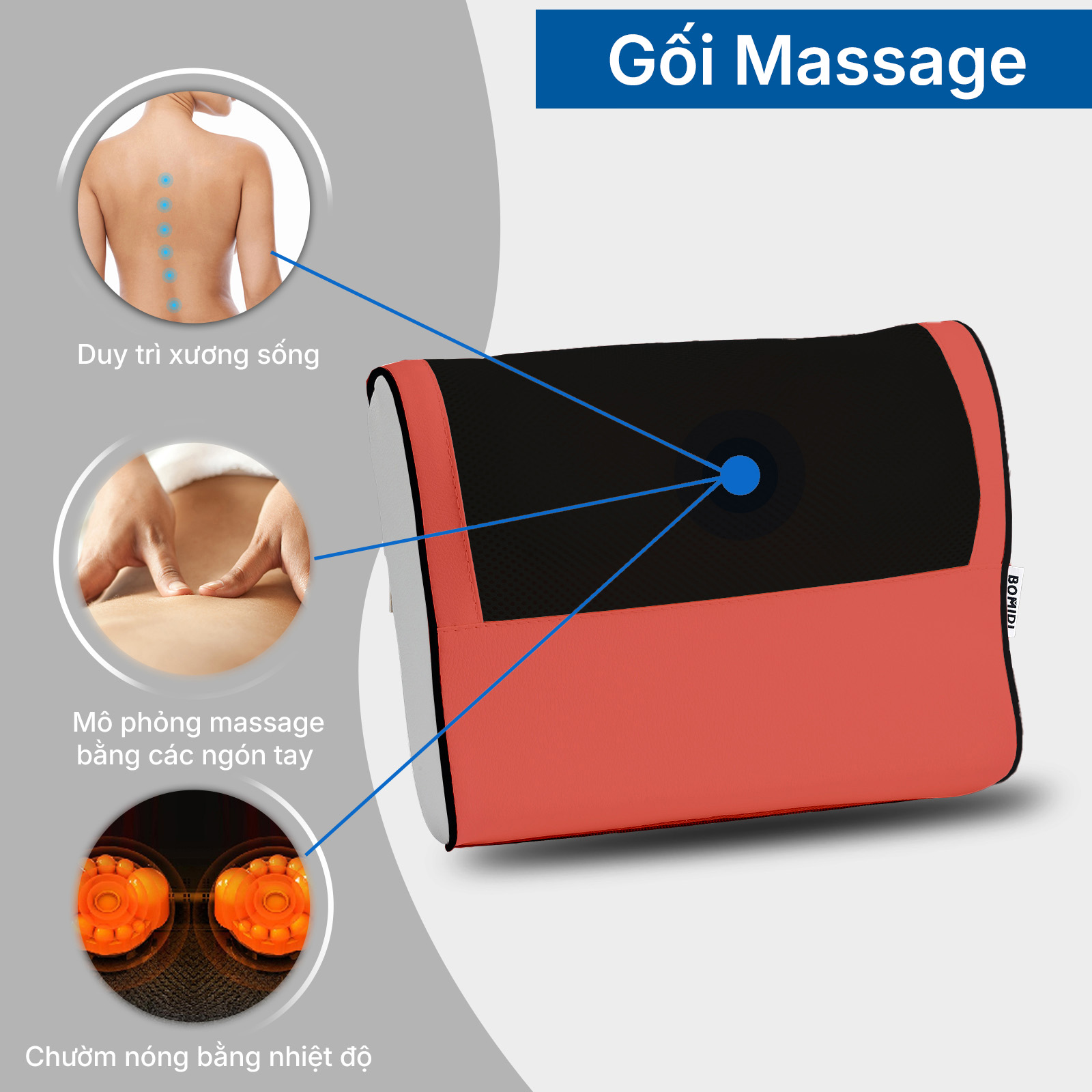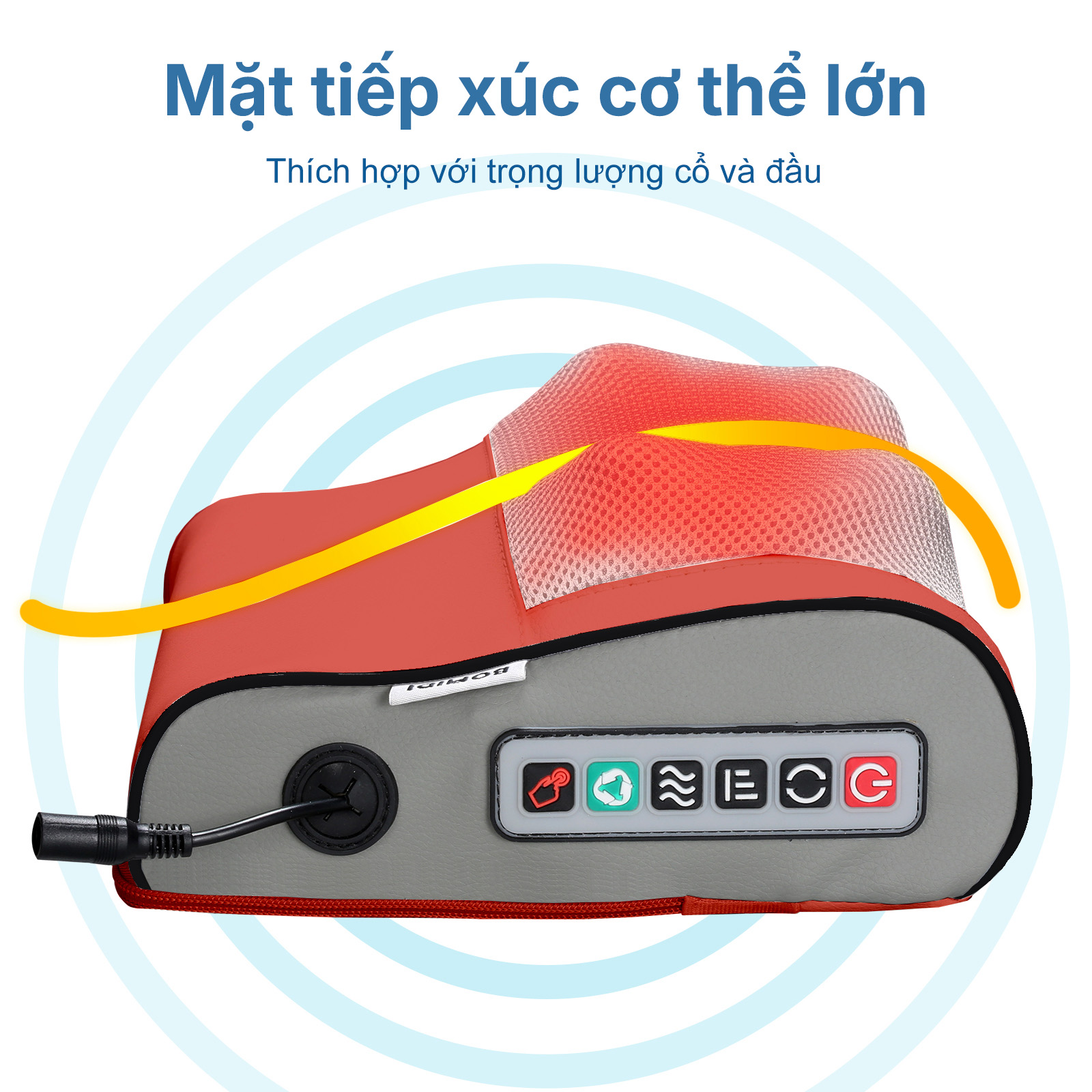 Gối massage Bomidi MP1 sở hữu 20 con bi lăn linh hoạt, mô phỏng chính xác các động tác massage như tay người, mang đến cảm giác thư giãn sâu và giảm căng thẳng cơ bắp hiệu quả. Với diện tích tiếp xúc rộng, sản phẩm có thể áp dụng cho nhiều vùng trên cơ thể, bao gồm cổ, lưng, bụng, tay và đùi, giúp người dùng trải nghiệm cảm giác thư giãn toàn diện mọi lúc.