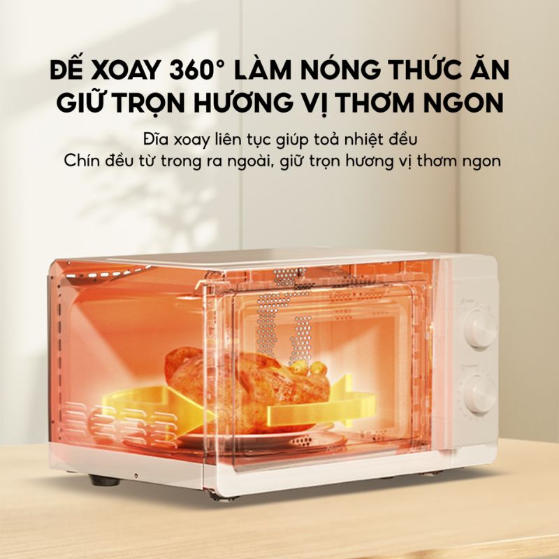 Với thiết kế tinh tế cùng gam màu trắng trang nhã, lò vi sóng AQUA AQS-MWM2001R(W)-VN dễ dàng hòa hợp trong mọi không gian bếp hiện đại. Dung tích khoang 20L đáp ứng tốt nhu cầu nấu nướng và hâm nóng thường ngày. Cơ chế đĩa xoay 360° giúp phân bổ nhiệt đều, làm nóng thực phẩm toàn diện từ trong ra ngoài, giữ trọn hương vị thơm ngon. Khoang lò rộng rãi kết hợp cùng khả năng hoạt động ổn định mang đến trải nghiệm tiện lợi, nhanh chóng, hỗ trợ người dùng tối đa trong quá trình chuẩn bị bữa ăn.
