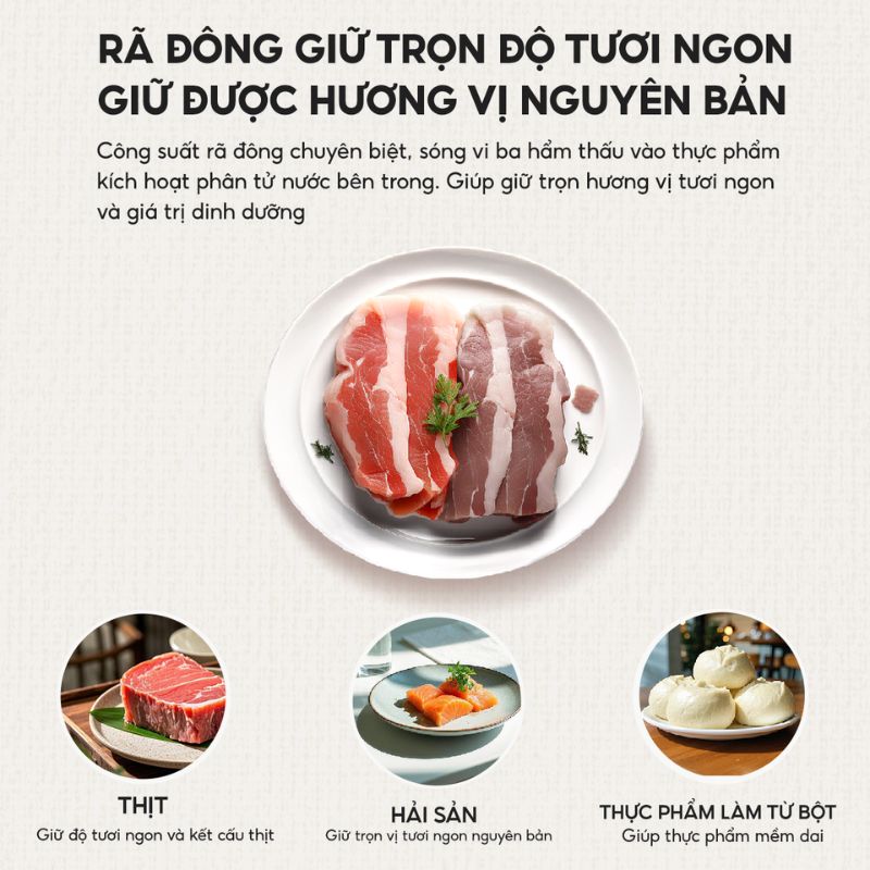 - Rã đông nhanh chóng, giữ nguyên hương vị