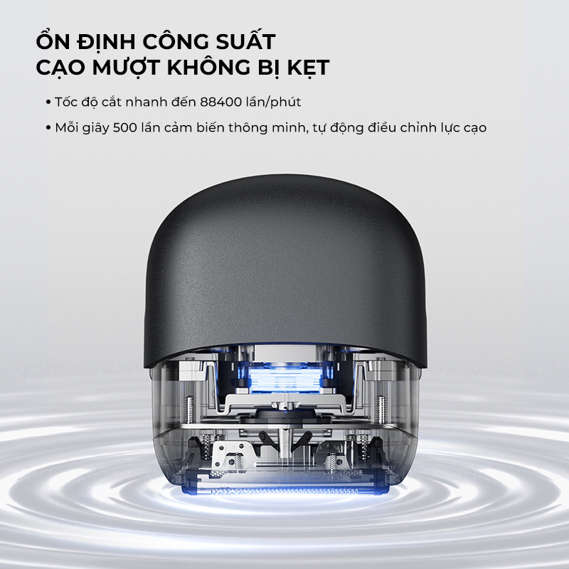 Được tích hợp công nghệ kiểm soát lực cạo hiện đại với tần suất ổn định khoảng 500 dao động mỗi giây, máy cạo râu SHOWSEE giúp lưỡi dao hoạt động mượt mà và đều đặn trên bề mặt da. Cơ chế này hạn chế tối đa tình trạng giật râu, giảm cảm giác đau rát thường gặp khi cạo với tốc độ cao. Hệ thống thông minh còn có khả năng điều chỉnh lực tác động tùy theo độ dày và độ cứng của râu, đảm bảo cạo sạch râu cứng, dày mà vẫn êm ái trên vùng râu mềm và thưa. Sự kết hợp giữa dao sắc bén, động cơ mạnh mẽ và khả năng kiểm soát lực ổn định mang lại trải nghiệm cạo râu an toàn, thoải mái và hiệu quả hơn trong mọi tình huống.