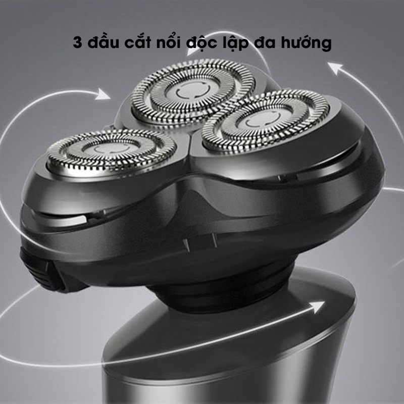 Máy cạo râu Showsee F305-GY được cải tiến với 3 đầu cắt nổi độc lập đa hướng, có thể tự động điều chỉnh góc cạo cho các đường nét trên mọi khuôn mặt khác nhau ở các vị trí như khóe miệng, hàm, cổ,...mang đến các thao tác cạo linh hoạt.
