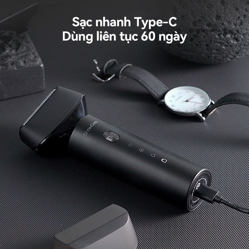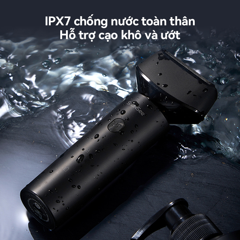 Đạt chuẩn chống nước IPX7, máy cạo râu SHOWSEE cho phép sử dụng linh hoạt trong cả hai chế độ cạo khô và cạo ướt tùy theo nhu cầu. Người dùng có thể thoải mái cạo râu nhanh gọn khi da khô hoặc kết hợp cùng bọt cạo để tăng độ êm ái mà không lo máy bị hỏng. Nhờ khả năng chống nước toàn diện, thiết bị cũng có thể vệ sinh trực tiếp dưới vòi nước sau mỗi lần sử dụng, giúp duy trì lưỡi dao luôn sạch sẽ và an toàn cho da. Đầu cạo có thể tháo rời tiện lợi, hỗ trợ quá trình làm sạch nhanh chóng và đơn giản. Tính năng này mang lại sự tiện dụng cao, đồng thời đảm bảo tuổi thọ bền bỉ cho sản phẩm.
