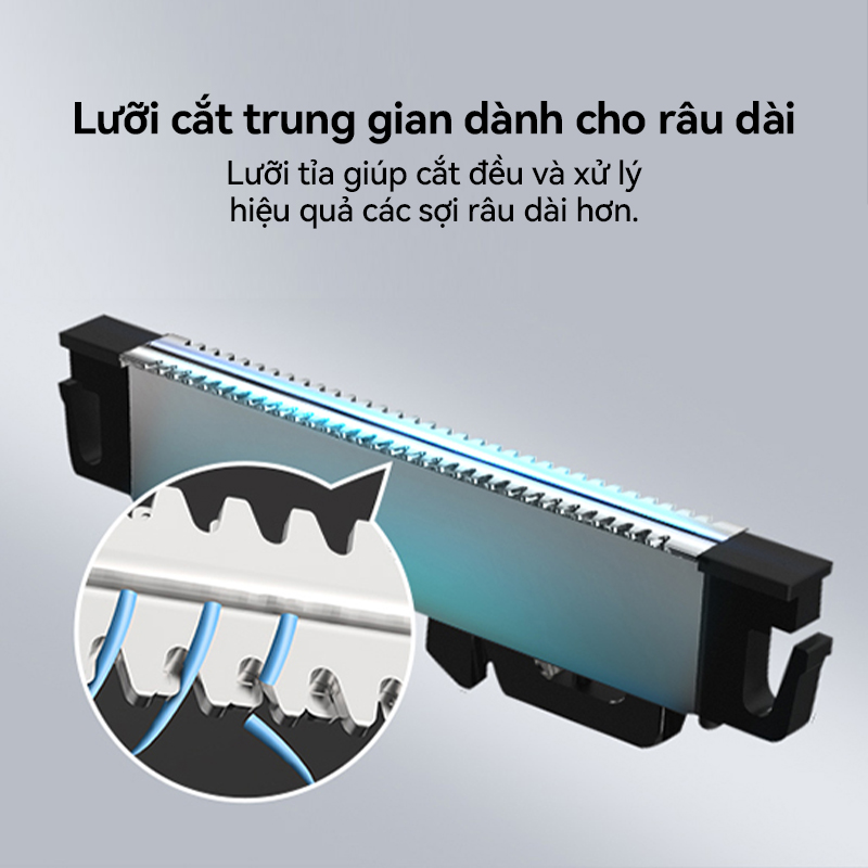 - Lưới cắt siêu mỏng, cạo sạch từng sợi râu