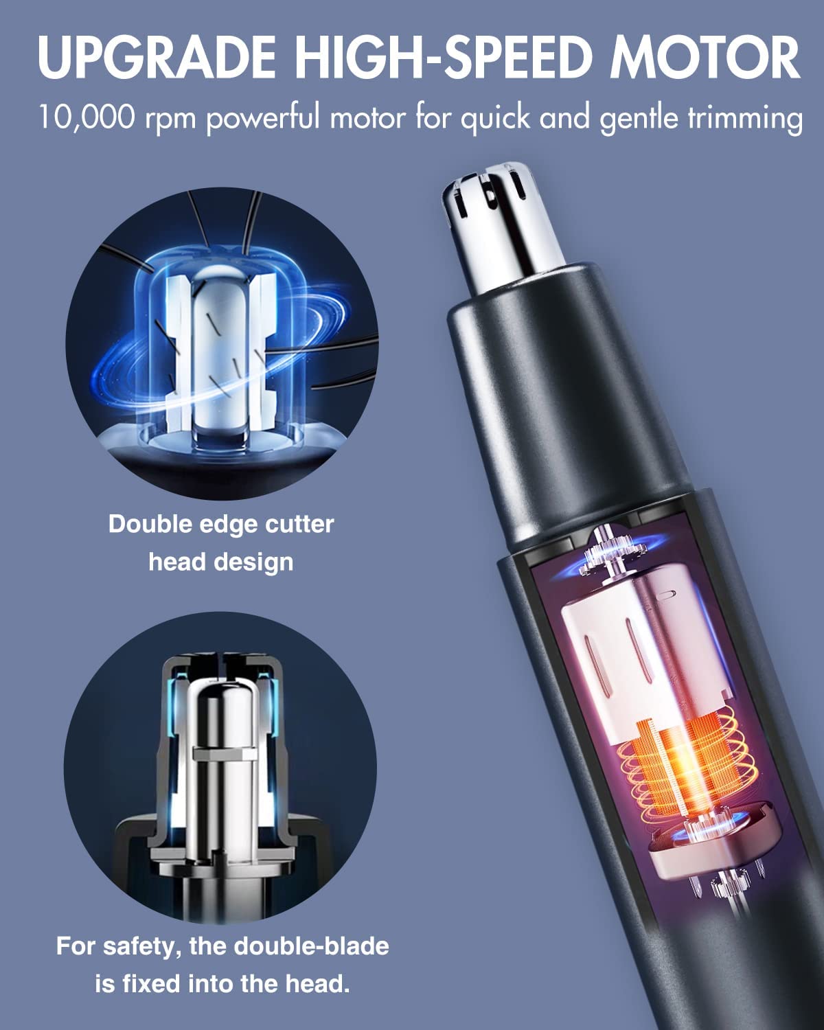 Đặc biệt là máy cắt tỉa lông mũi còn được trang bị động cơ mini với khả năng cho mô-men xoắn cao, tốc độ mạnh mẽ mà vẫn giữ độ êm ái khi hoạt động, không gây ra tiếng ồn. Hơn nữa động cơ mạnh mẽ cũng giúp lưỡi dao cắt gọn gàng hơn tránh trường hợp kéo, dính lông mũi, gây đau rát, khó chịu cho người dùng.
