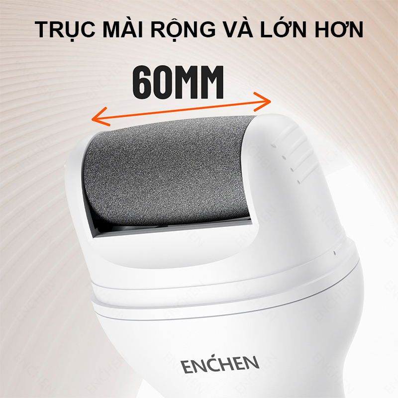 Đầu mài Enchen Rock 2 được nâng cấp với kích thước lớn tới 60mm và khả năng xoay tròn 360°, giúp thiết bị tiếp cận nhiều vị trí trên bàn chân một cách linh hoạt. Với bề mặt tiếp xúc rộng, máy xử lý các vùng da chai, nứt hay sần ở gót chân, mu bàn chân và cả hai bên cạnh chân nhanh hơn và đồng đều hơn, mang lại hiệu quả chăm sóc rõ rệt.