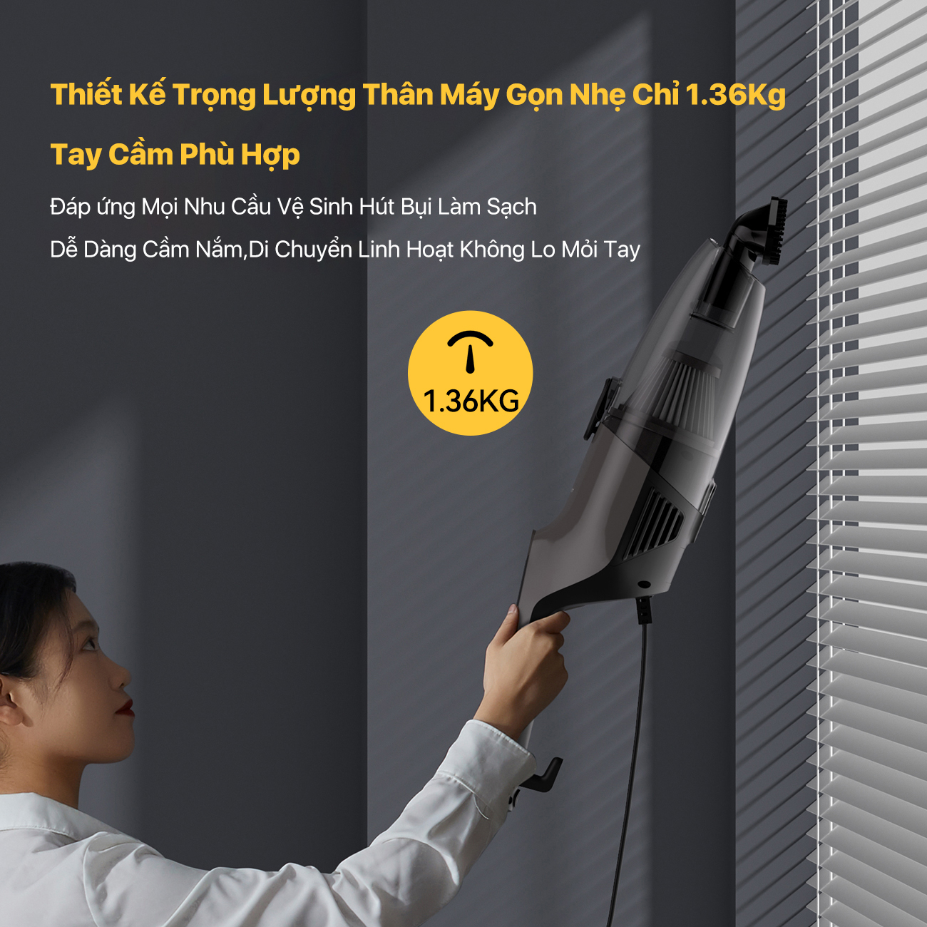 Sở hữu trọng lượng nhẹ cùng thiết kế tối ưu, thiết bị cho phép bạn vận hành linh hoạt tại nhiều vị trí khác nhau mà không tốn quá nhiều công sức. Dung tích ngăn chứa bụi đạt mức 1.2L, hỗ trợ làm sạch diện tích lớn mà không cần đổ rác nhiều lần. Đặc biệt, máy hút bụi Deerma thay đổi cấu trúc linh hoạt giữa dạng đứng và cầm tay, giúp việc vệ sinh từ sàn nhà đến các ngóc ngách trên cao trở nên đơn giản hơn bao giờ hết.