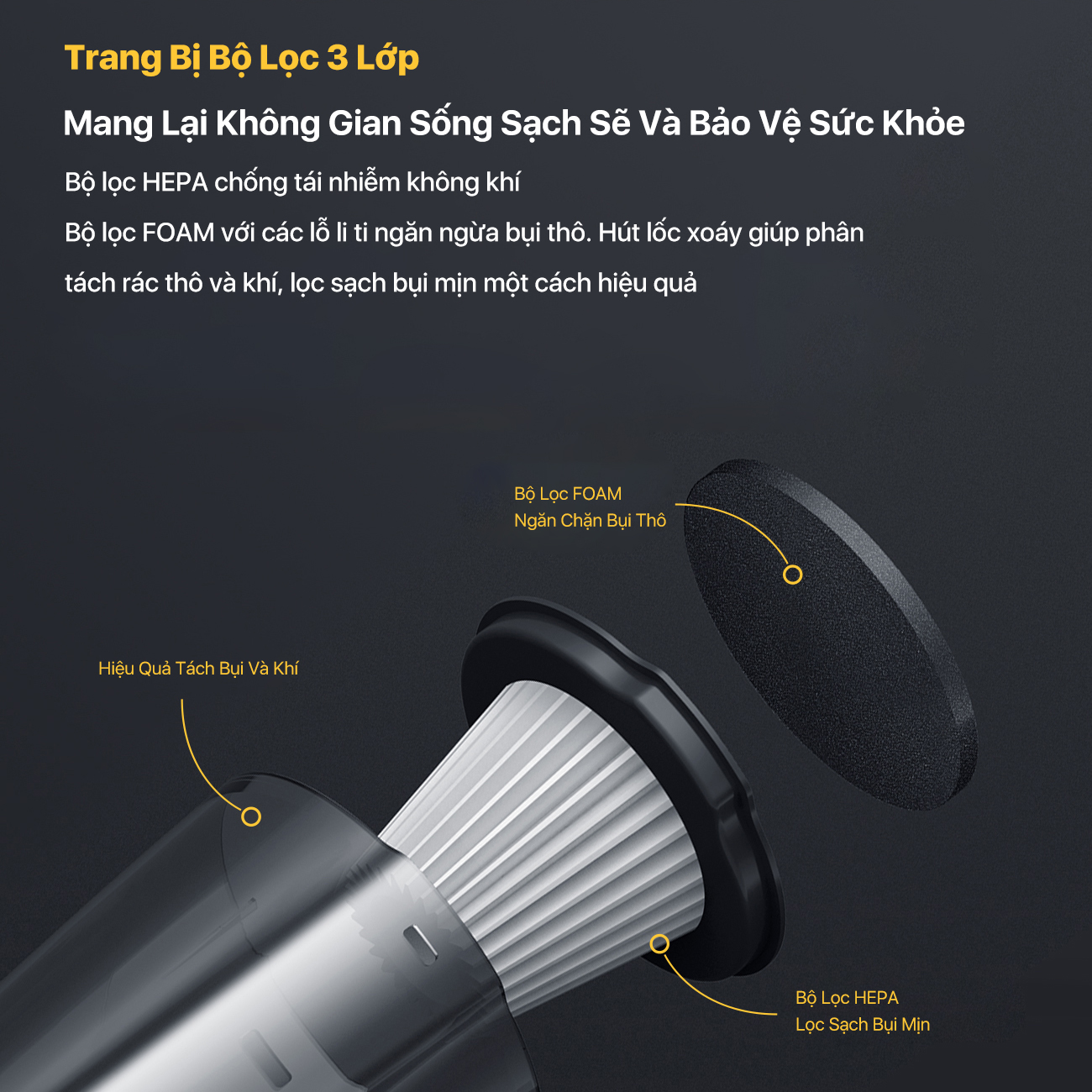 - Bộ lọc HEPA lọc sạch hiệu quả