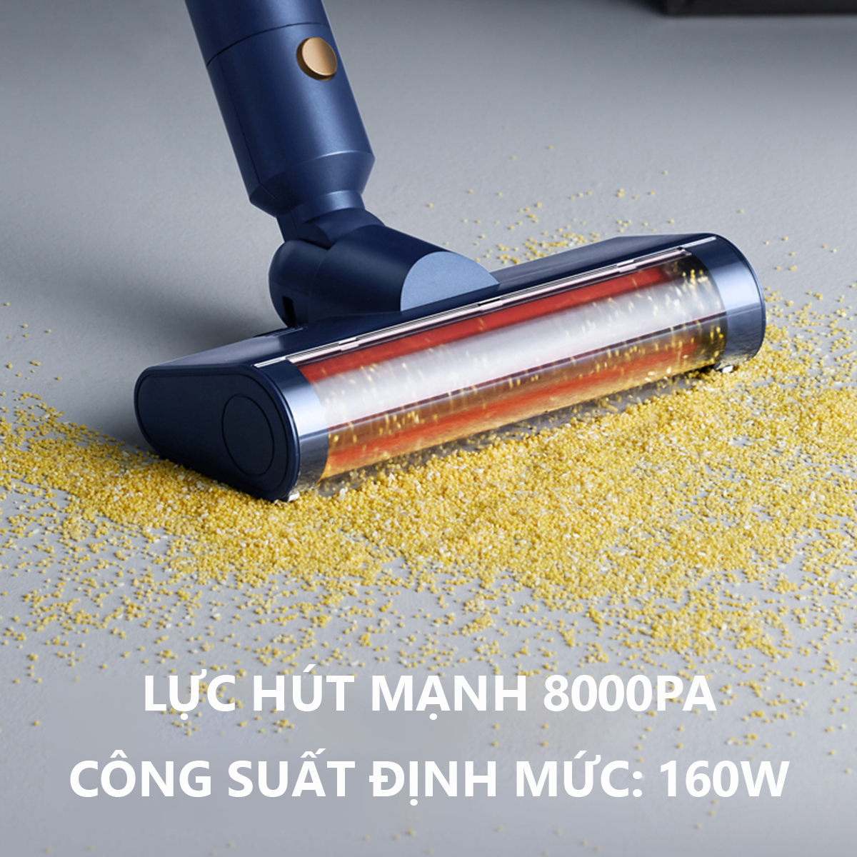 Máy hút bụi hoạt động với công suất lớn 160W, cung cấp lực hút 8000 Pa giúp hút sạch và đánh bay bụi bẩn, tóc và các tác nhân gây dị ứng.