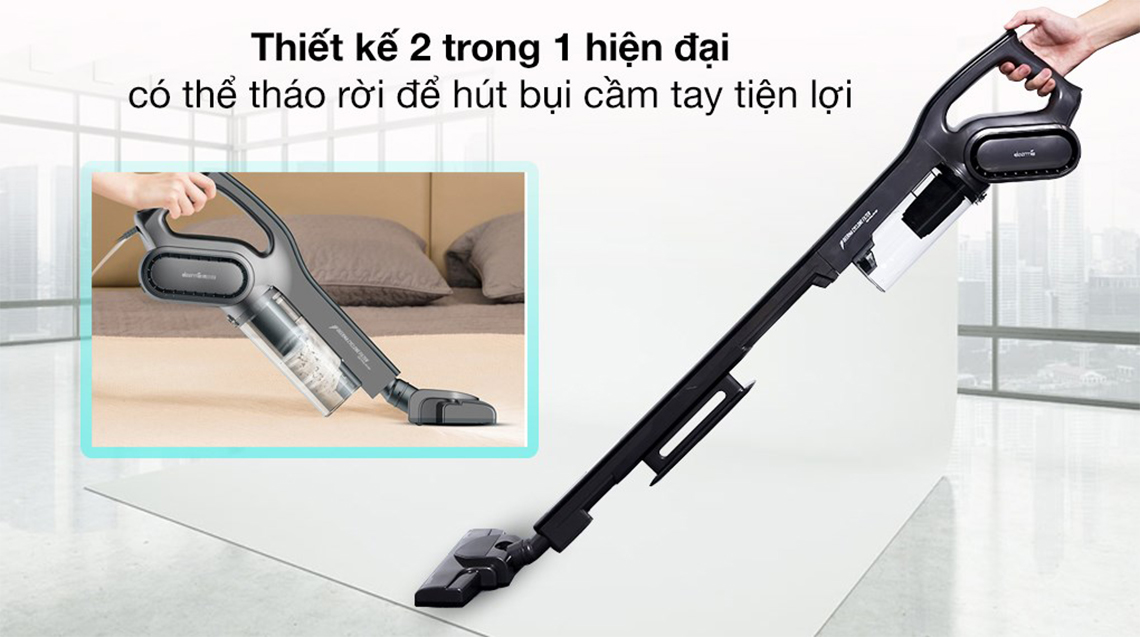 - Thiết kế 2 trong 1 tiện lợi, tháo rời sử dụng như máy hút bụi cầm tay