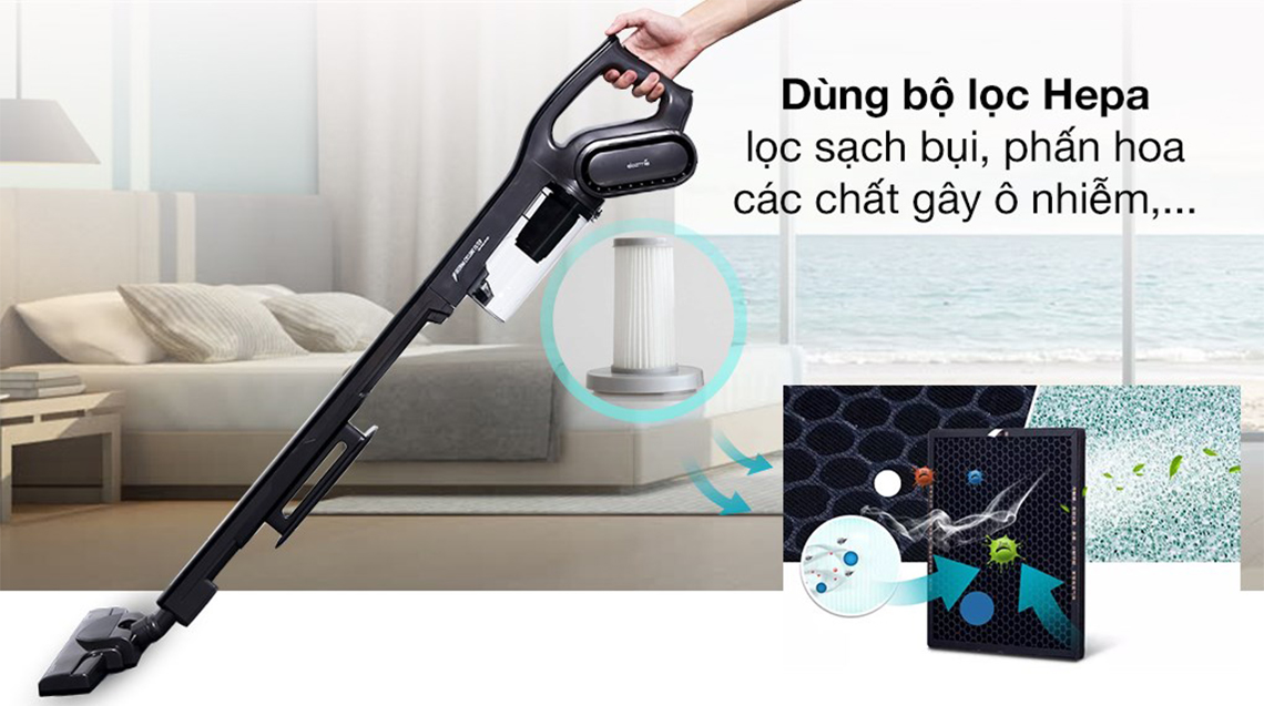 Máy hút bụi kết hợp cùng bộ lọc HEPA lọc sạch bụi mịn, mang lại bầu không khí trong lành