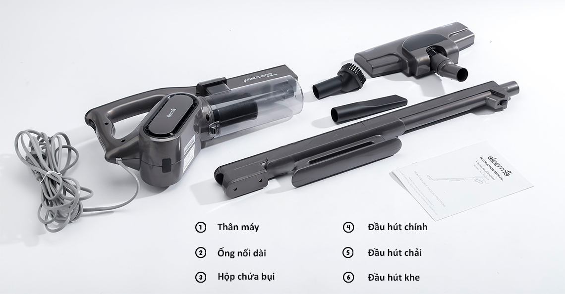 Deerma DX700 cho khả năng làm sạch tốt ở nhiều vị trí khác nhau bởi được trang bị 3 đầu hút đi kèm, đáp ứng nhu cầu làm sạch mọi vị trí trong nhà:
