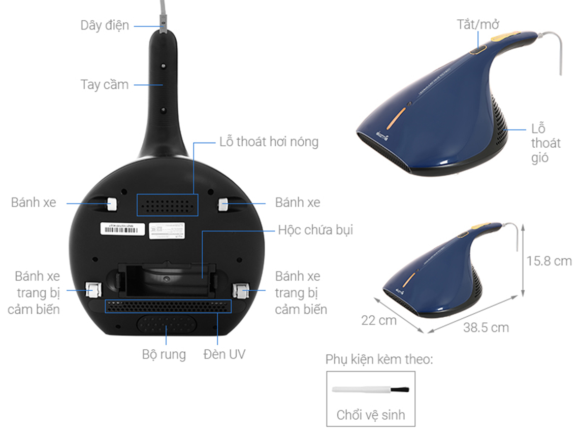 - Cụ thể, khe hút với tốc độ gió siêu mạnh sẽ giúp loại bỏ các con bọ cũng như bụi bẩn, lông tóc không chỉ trên bề mặt mà còn len lỏi sâu vào từng cấu trúc vải, thậm chí đối với đệm dày thì thiết bị cũng sẽ hoạt động tốt và làm sạch sâu hoàn toàn.