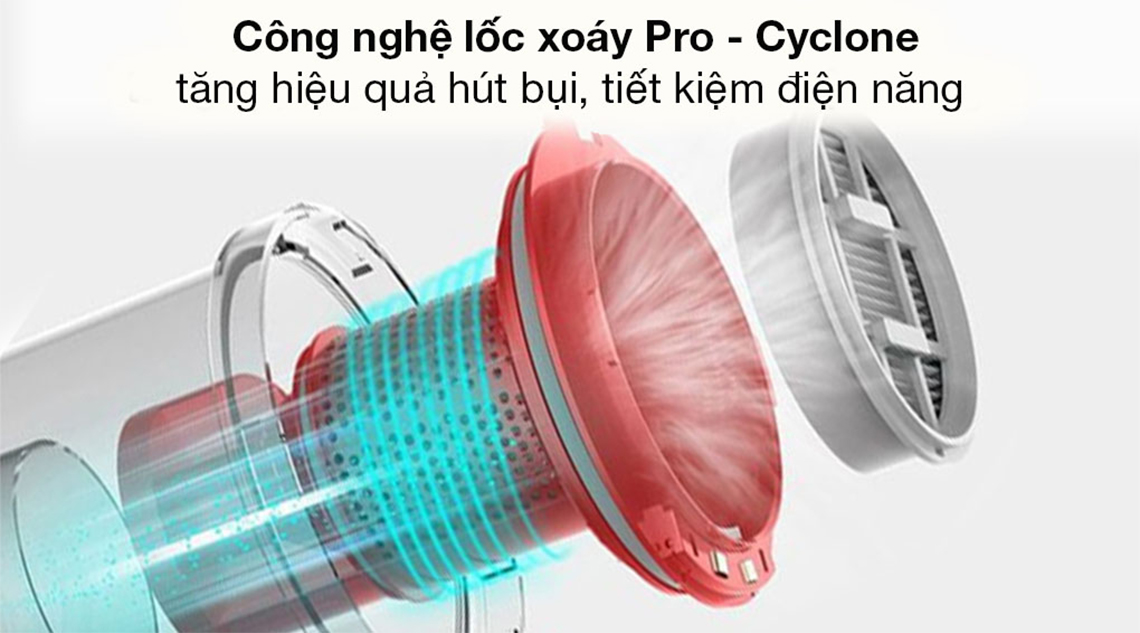 Máy hút bụi cầm tay không dây Deerma ứng dụng công nghệ lốc xoáy Pro-Cyclone, giúp tăng hiệu quả hút bụi và tiết kiệm điện năng hiệu quả