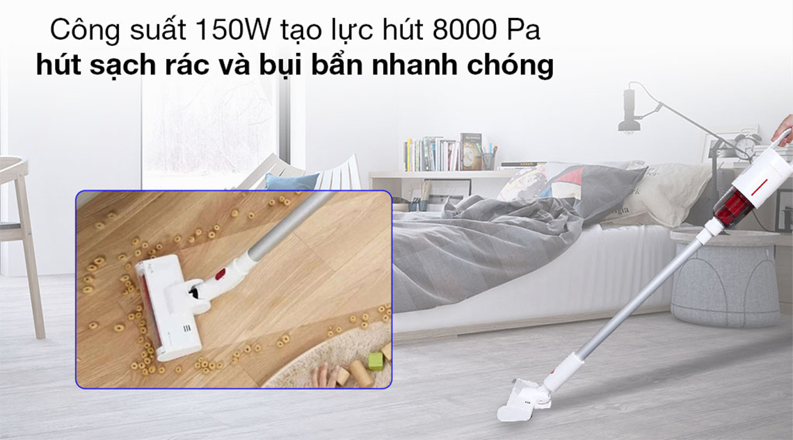 Xiaomi Deerma Vacuum Cleaner VC20 Plus ứng dụng công nghệ lốc xoáy giúp tăng hiệu quả hút bụi và tiết kiệm điện năng hiệu quả. Cụ thể công suất hoạt động của VC20 Plus lên đến 150W mạnh mẽ, nhưng vẫn khá yên tĩnh với độ ồn dưới 75dB.