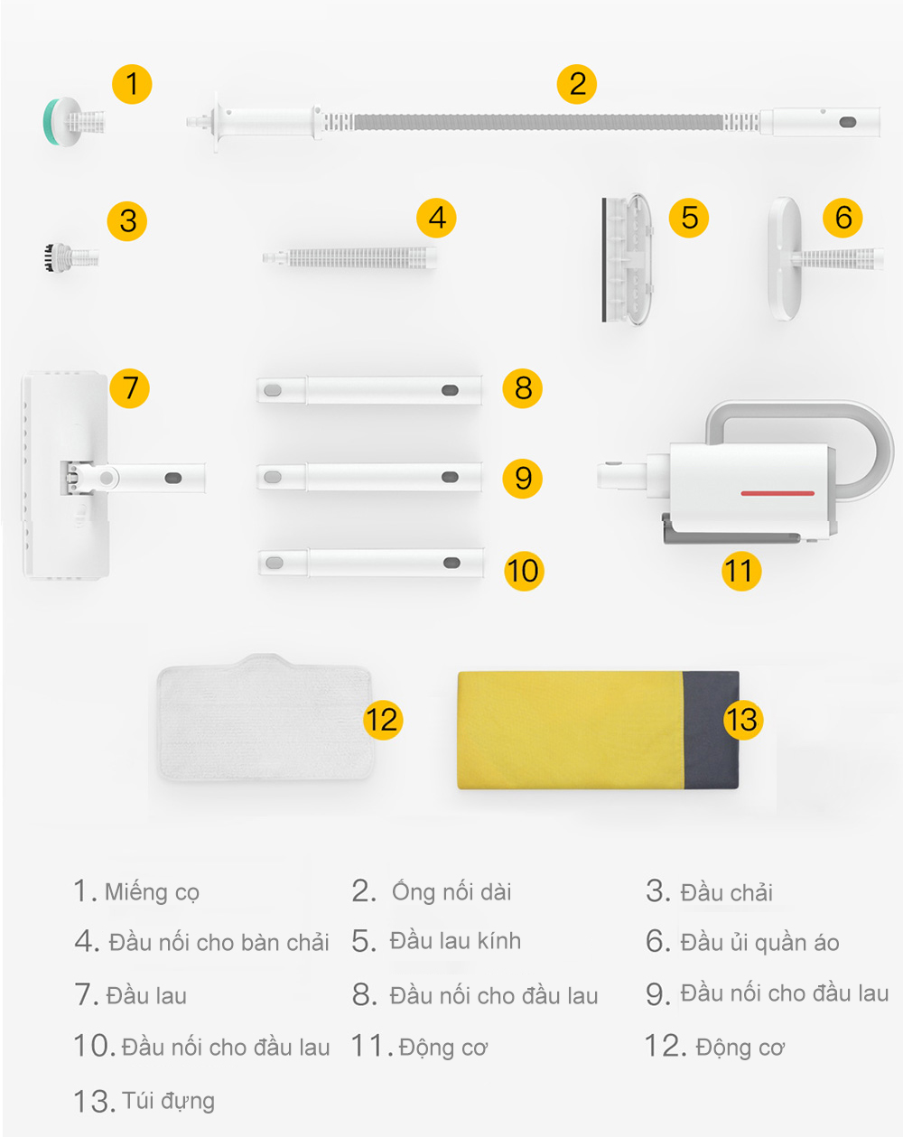 Máy làm sạch bằng hơi nước Deerma ZQ600 được trang bị 5 đầu bàn chải khác nhau như đầu cọ, đầu lau, đầu bàn chải sắt, đầu lau kính, đầu sợi vải. Người dùng chỉ cần lắp đặt đầu bàn chải cùng ống nối và ống thổi linh hoạt mở rộng hoặc thu hẹp mọi phạm vi làm sạch.
