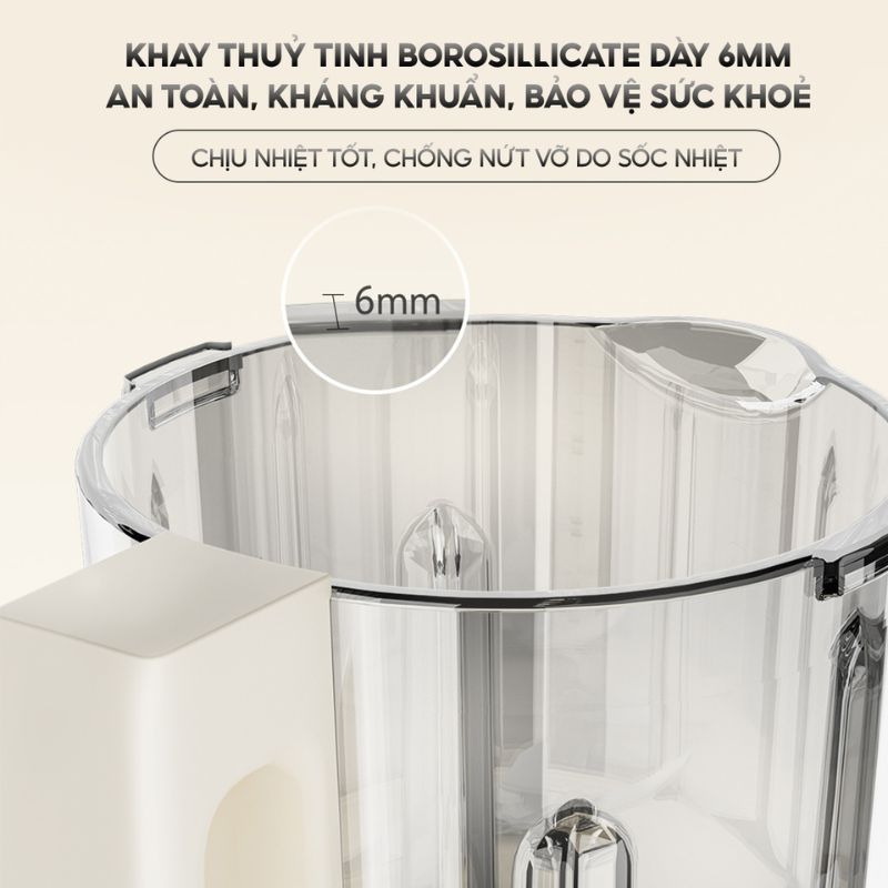 Sử dụng cối xay bằng thủy tinh Borosilicate dày 6mm, máy làm sữa hạt đa năng AQUA AQS-BMT1201T(W) có khả năng chịu nhiệt và chống va đập tốt, đảm bảo an toàn cho thực phẩm trong quá trình chế biến. Bề mặt đáy cối được phủ lớp chống dính giúp giảm bám cặn và thuận tiện cho việc tháo lắp cũng như vệ sinh sau khi sử dụng. Sản phẩm còn hỗ trợ người dùng tối đa với chế độ vệ sinh tự động cùng tính năng sấy khô và khử khuẩn chỉ bằng một nút nhấn, giúp tiết kiệm thời gian và đảm bảo cối luôn sạch sẽ, an toàn trong mỗi lần sử dụng.