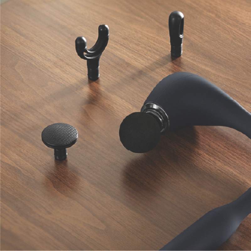 Sản phẩm đi kèm với 4 đầu phụ kiện massage chuyên biệt, được thiết kế để đáp ứng từng nhu cầu và vị trí massage khác nhau trên cơ thể. Mỗi đầu massage có hình dạng và kết cấu đặc trưng, tối ưu hóa tác động lên từng nhóm cơ, từ các vùng cơ lớn như lưng, đùi, bắp tay đến những điểm nhỏ hơn như cổ, vai hay gan bàn chân. Sự kết hợp giữa các đường cong tinh tế và các điểm massage được thiết kế khoa học giúp tăng cường hiệu quả tác động, mang lại trải nghiệm thư giãn tối ưu, hỗ trợ giảm căng cơ, cải thiện tuần hoàn máu và phục hồi cơ bắp một cách nhanh chóng và hiệu quả nhất.