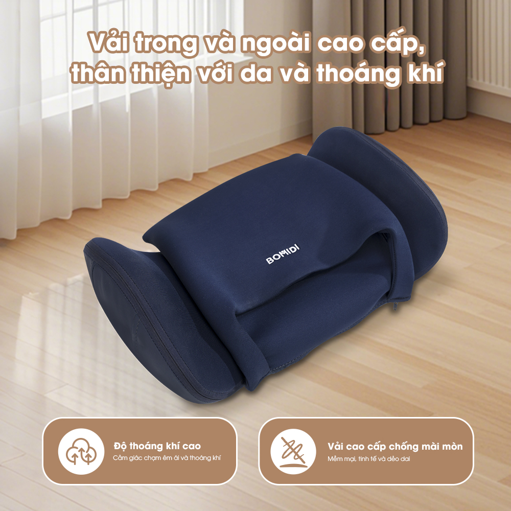 Với kích thước nhỏ gọn, trọng lượng chỉ 1.2kg, máy massage chân Bomidi rất thuận tiện để mang theo khi đi làm, du lịch hay sử dụng tại bất kỳ không gian nào. Phần vỏ ngoài làm từ chất liệu vải thoáng khí, an toàn cho da, tạo cảm giác dễ chịu và thoải mái khi tiếp xúc trực tiếp. Phần vớ chân có thể tháo rời để vệ sinh định kỳ, đảm bảo luôn sạch sẽ, bền đẹp và an toàn trong suốt quá trình sử dụng.