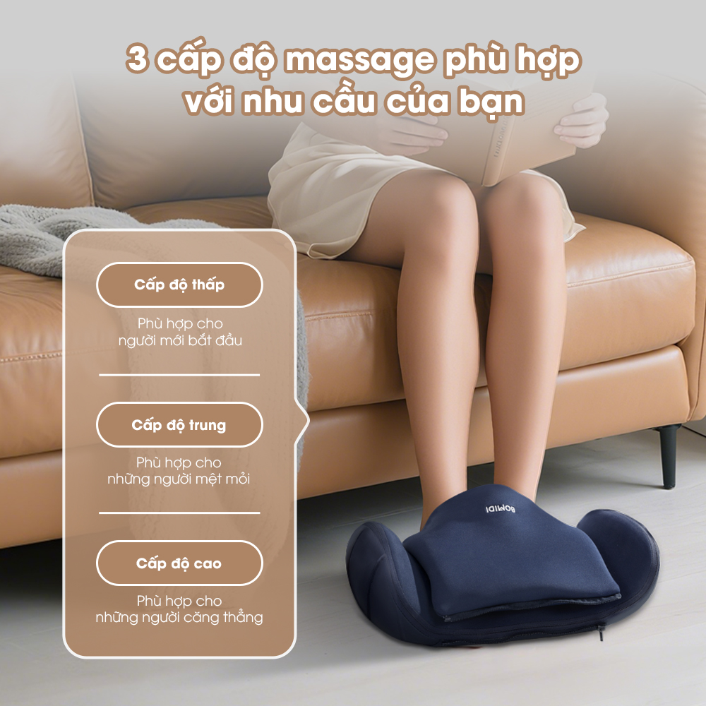 Máy massage chân Bomidi FM4 được trang bị 3 chế độ massage chuyên sâu kết hợp cùng 3 cấp độ thư giãn linh hoạt, giúp bạn dễ dàng lựa chọn mức độ phù hợp với thể trạng của mình. Đặc biệt, tính năng đảo chiều con lăn thông minh mang đến cảm giác massage chân thực, đa dạng hơn, hỗ trợ thư giãn cơ bắp toàn diện. Nhờ đó, bạn sẽ luôn có được trải nghiệm êm ái và thoải mái trong từng lần sử dụng.