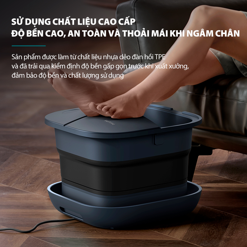 Thân bồn PPM6504 được chế tạo từ nhựa dẻo đàn hồi TPE cao cấp, có khả năng chống va đập và hạn chế biến dạng hiệu quả, giúp sản phẩm bền bỉ và ổn định trong suốt quá trình sử dụng. Chất liệu này không chỉ mang lại độ chắc chắn và an toàn cao, mà còn tạo cảm giác êm ái, thoải mái cho bạn mỗi khi ngâm chân thư giãn.