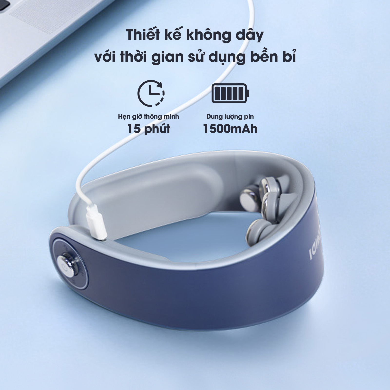 Máy massage cổ Bomidi MP3 sở hữu dung lượng Pin 1500 mAh, mang đến khả năng hoạt động mạnh mẽ và bền bỉ. Sau mỗi lần sạc đầy, bạn có thể tận hưởng đến 150 phút massage liên tục, đủ để sử dụng thoải mái trong nhiều ngày mà không cần lo lắng về việc sạc lại thường xuyên. Bên cạnh đó, máy được thiết lập tính năng tự động giới hạn mỗi lần massage trong 15 phút. Cơ chế này vừa đảm bảo an toàn cho vùng cổ, vừa duy trì hiệu quả thư giãn tốt nhất cho người dùng. Đây là sự kết hợp hoàn hảo giữa công nghệ hiện đại và tính tiện ích, mang lại trải nghiệm sử dụng an toàn, tiết kiệm và bền vững.