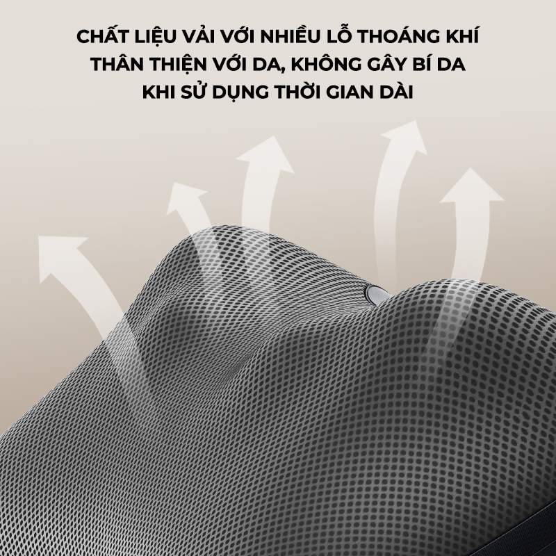 Bề mặt PPM3307 được làm từ chất liệu vải lưới tổ ong cao cấp, có độ thoáng khí vượt trội, mềm mại và thân thiện với làn da. Không chỉ hạn chế ma sát, giảm cảm giác nóng bí khi sử dụng lâu, mà còn tạo sự thông thoáng, dễ chịu trong suốt quá trình massage. Nhờ vậy, mỗi phút giây thư giãn cùng máy massage Philips đều trở nên êm ái, an toàn và thoải mái như được chăm sóc ở spa ngay tại nhà.