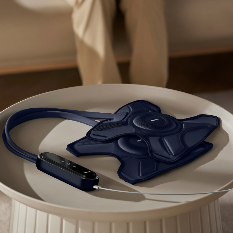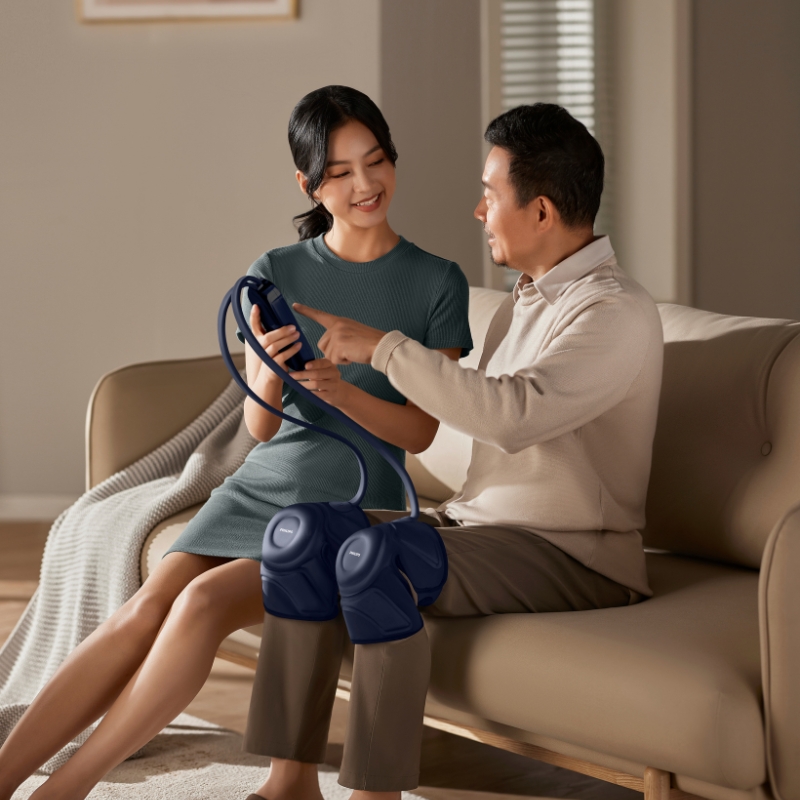 Phần đầu gối của máy massage Philips PPM5521 được tích hợp hệ thống treo khí dạng vòng, giúp cố định xương bánh chè một cách ổn định và êm ái. Cơ chế này hoạt động bằng cách bơm căng túi khí để tạo lực nâng đỡ, giúp giảm áp lực lên xương bánh chè. Ngoài ra, thiết bị còn có chức năng massage linh hoạt, được thực hiện thông qua chu trình luân phiên giữa bơm hơi và xả hơi, mang lại cảm giác thư giãn và hỗ trợ phục hồi hiệu quả.