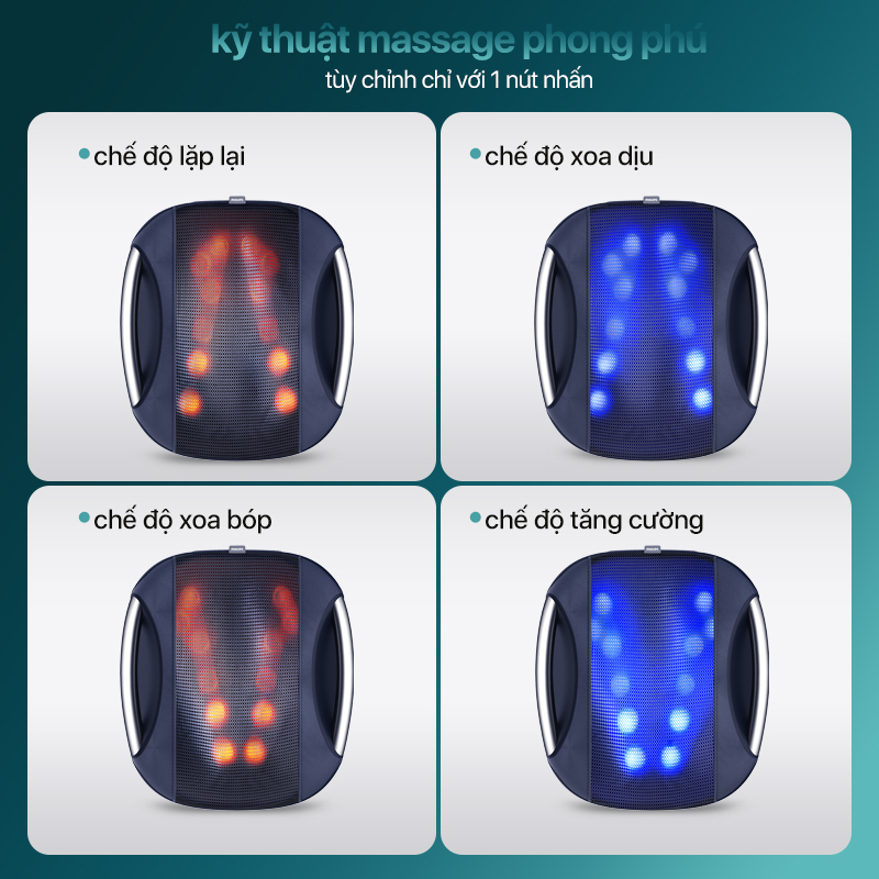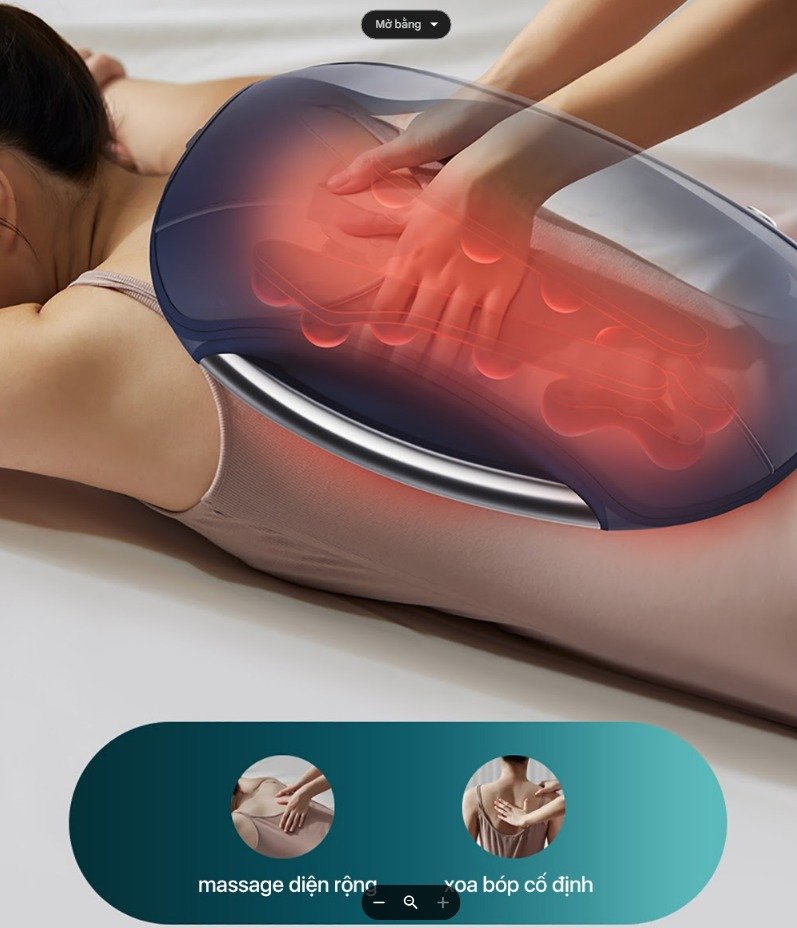 - Trang bị 12 đầu massage 3D, kết hợp chườm nóng