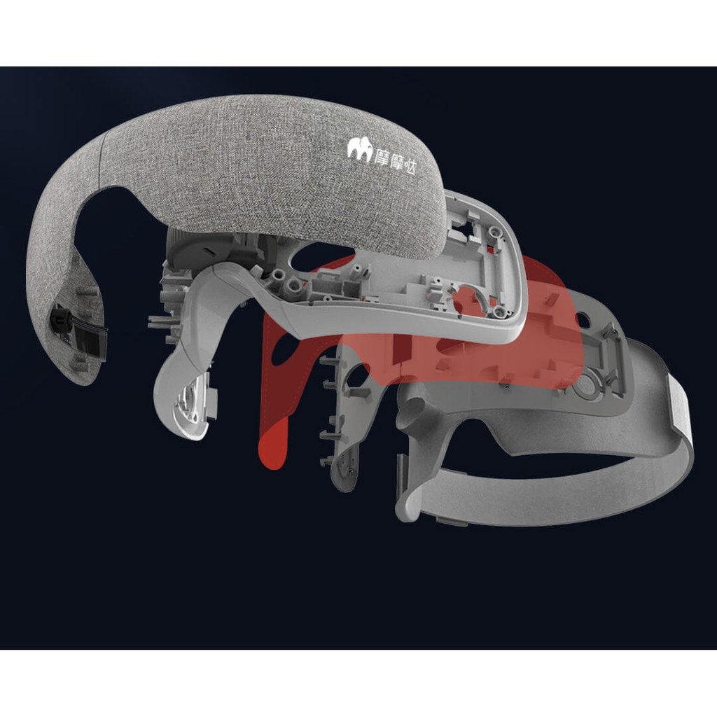 Các sản phẩm máy massage đến từ thương hiệu Momoda thường được đề cao phát triển tính năng hơn là mẫu mã. Do đó, thiết kế máy tối giản nhưng vẫn mang nét hiện đại, cao cấp. Thân máy màu xám trơn, bản to, đủ ôm lấy 2 mắt người dùng. Phía sau thân máy là 1 dây đeo bằng vải thun co giãn giúp cố định máy. Người dùng có thể điều chỉnh độ rộng của dây tùy theo kích thước đầu nhờ vào thiết kế khóa điều chỉnh chuyên dụng.