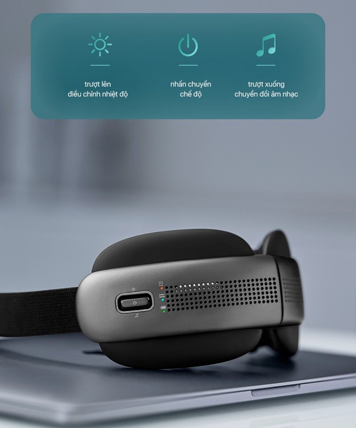 Máy massage mắt nghe nhạc PHILIPS PPM2522 sở hữu vẻ ngoài đơn giản, phần điều khiển của máy cũng được tối giản. Với chỉ 1 nút bấm người dùng có thể dễ dàng thực hiện nhiều chức năng cùng 1 lúc. Theo đó người dùng chỉ cần nhấn để chuyển các chế độ, xoay lên để điều chỉnh mức nhiệt chườm ấm và xoay xuống để chuyển nhạc. Với tất cả chức năng được tích hợp trong một nút bấm thì người dùng có thể dễ dàng điều khiển khi đang đứng, ngồi, nằm,....