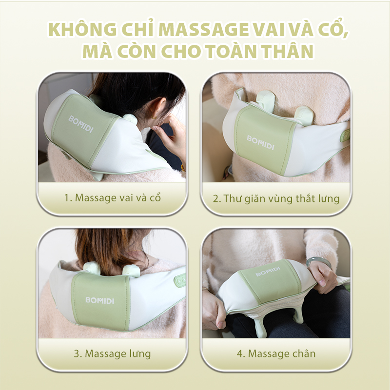 Được trang bị thiết kế 6 điểm tiếp xúc kết hợp với cấu trúc 3D ôm sát vùng vai và cổ, Máy massage Bomidi MP2 LITE giúp mở rộng diện tích tiếp xúc và phân bổ lực tác động hợp lý hơn. Nhờ cơ chế đẩy và ấn đồng đều tại các điểm tiếp xúc, sản phẩm hỗ trợ tác động sâu vào nhóm cơ cầu vai, từ đó cải thiện tình trạng căng cơ, giảm mỏi cổ và hỗ trợ thư giãn hiệu quả. Thiết kế ôm sát không chỉ giúp máy cố định chắc chắn khi sử dụng mà còn mang lại trải nghiệm massage ổn định, phù hợp với nhiều tư thế ngồi hoặc nằm trong sinh hoạt hàng ngày.