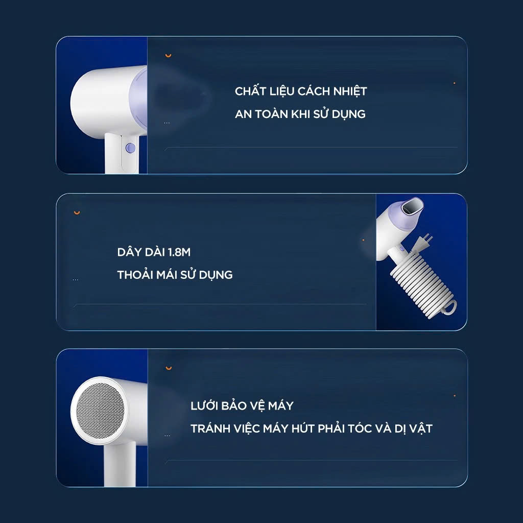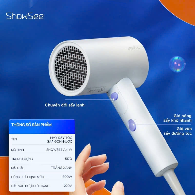 Showsee A4-W mang đến khả năng tùy chỉnh đa dạng nhờ sự kết hợp giữa 3 chế độ nhiệt và 2 tốc độ gió mạnh nhẹ, cho phép thay đổi linh hoạt theo từng nhu cầu cá nhân. Hệ thống điều khiển này đảm bảo hiệu quả sấy tối ưu cho mọi tình trạng tóc từ mỏng đến dày, đồng thời đáp ứng tốt các mục đích tạo kiểu hay làm khô nhanh mà vẫn duy trì sự an toàn tuyệt đối.