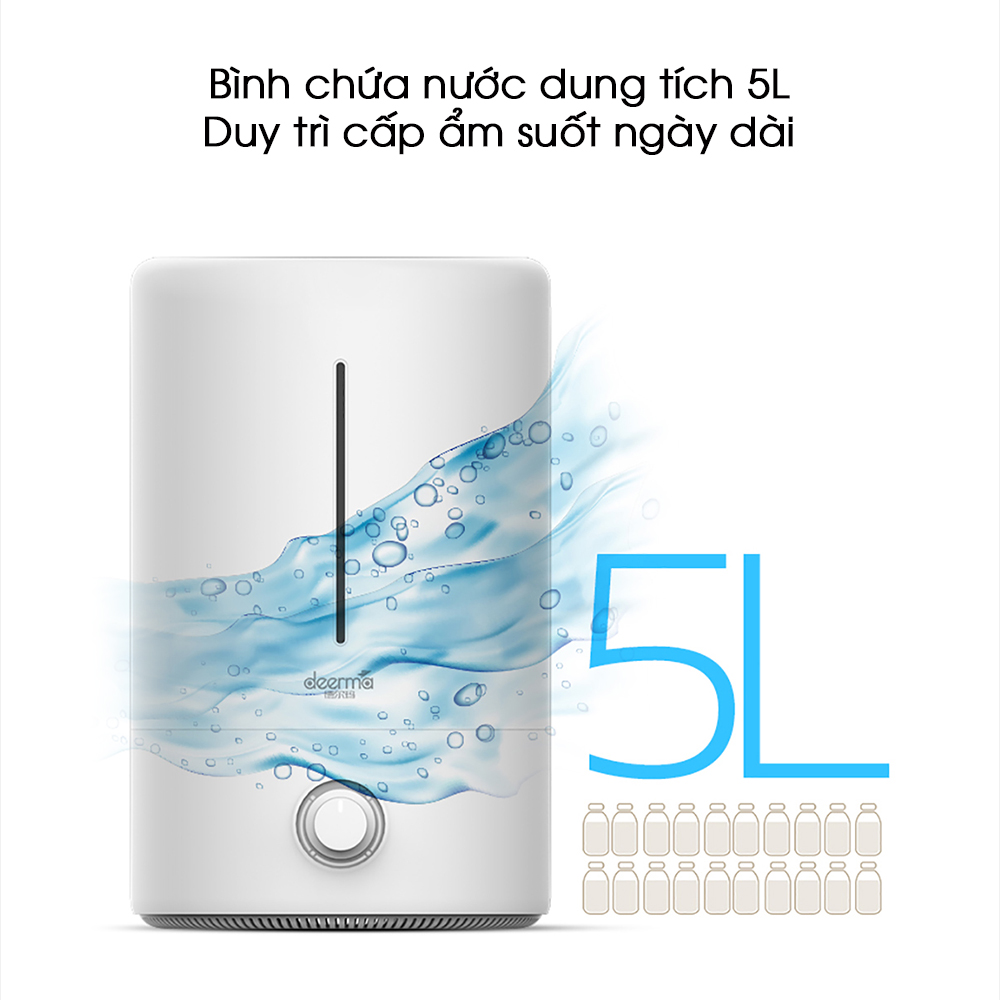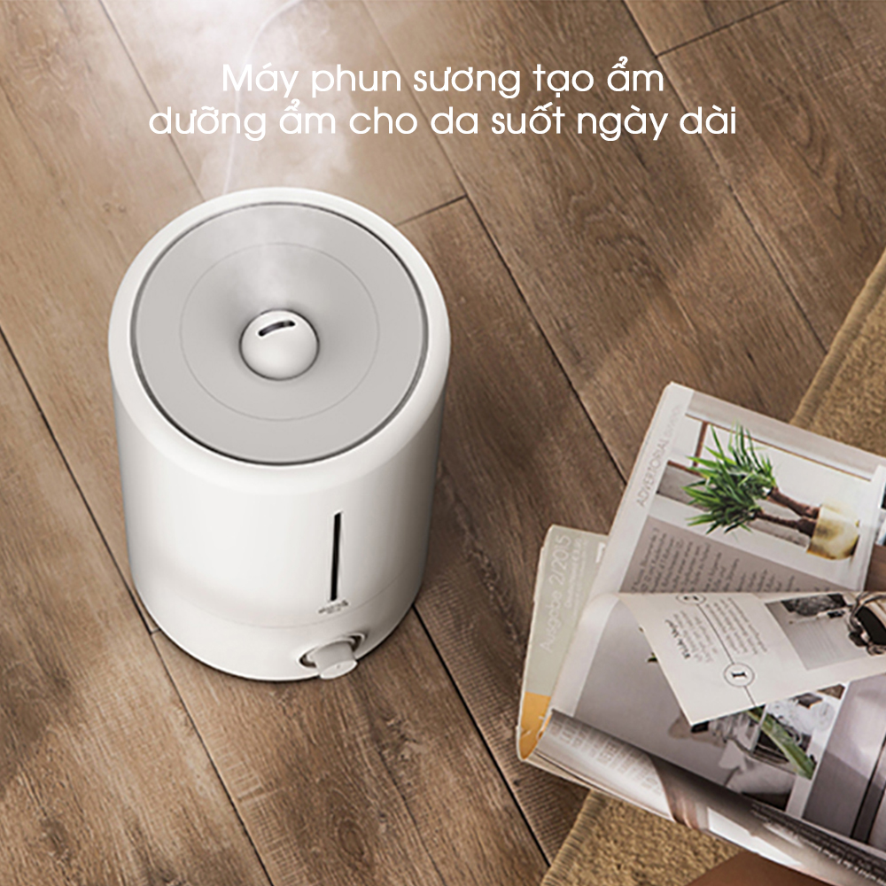 Công suất phun sương mạnh mẽ lên đến 350 ml/giờ, máy tạo độ ẩm Deerma F628 đảm bảo khả năng cấp ẩm tức thì cho không gian sống. Điểm cộng lớn nằm ở bình chứa dung tích 5 lít, cho phép thiết bị vận hành bền bỉ suốt 12 giờ liên tục mà không cần can thiệp thủ công. Ưu điểm này giúp bạn hoàn toàn yên tâm tận hưởng bầu không khí chuẩn ẩm xuyên đêm mà không phải bận tâm về việc tiếp nước thường xuyên.