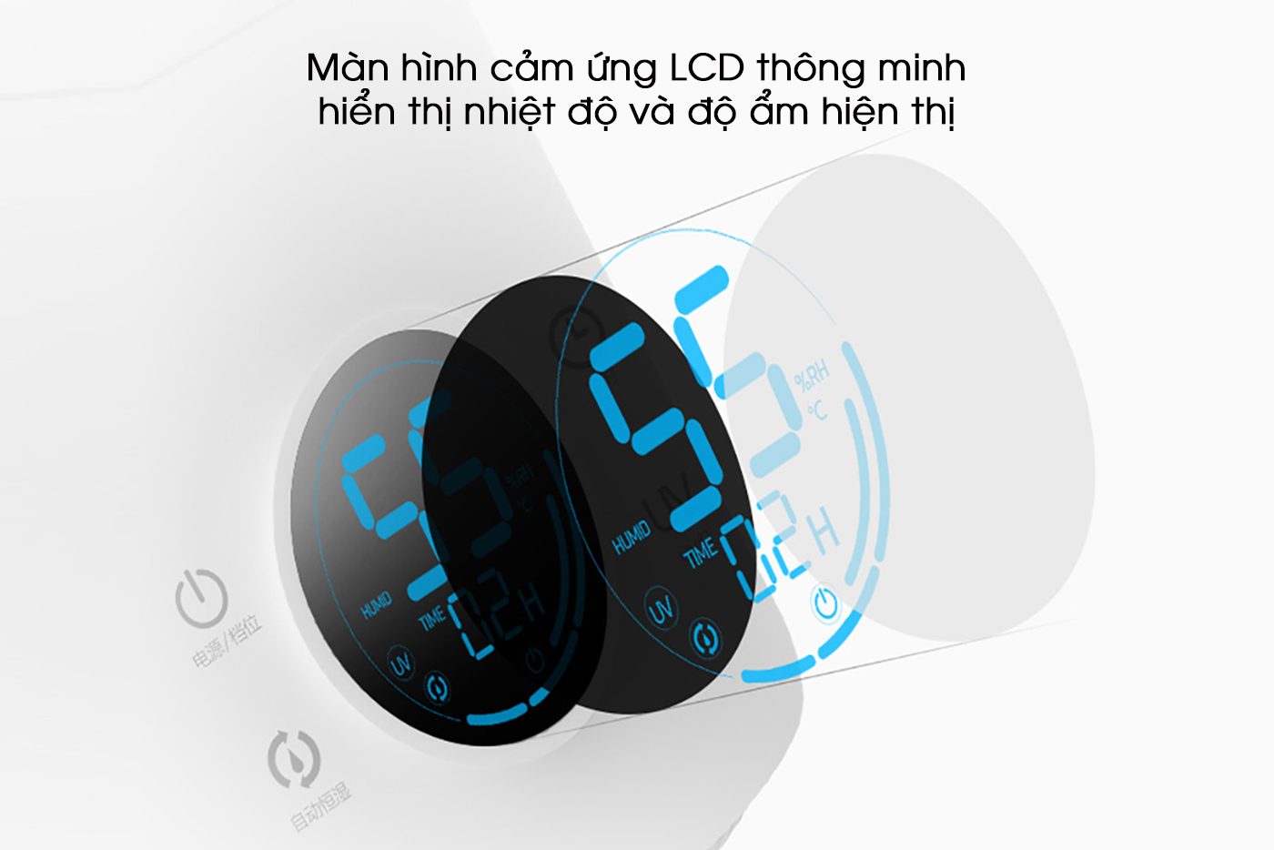 - Màn hình cảm ứng LCD, hiển thị nhiệt độ và độ ẩm thực