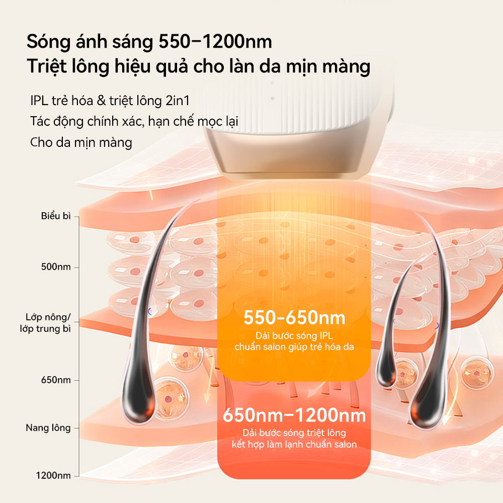 - Công nghệ triệt lông IPL, hỗ trợ dưỡng da hiệu quả