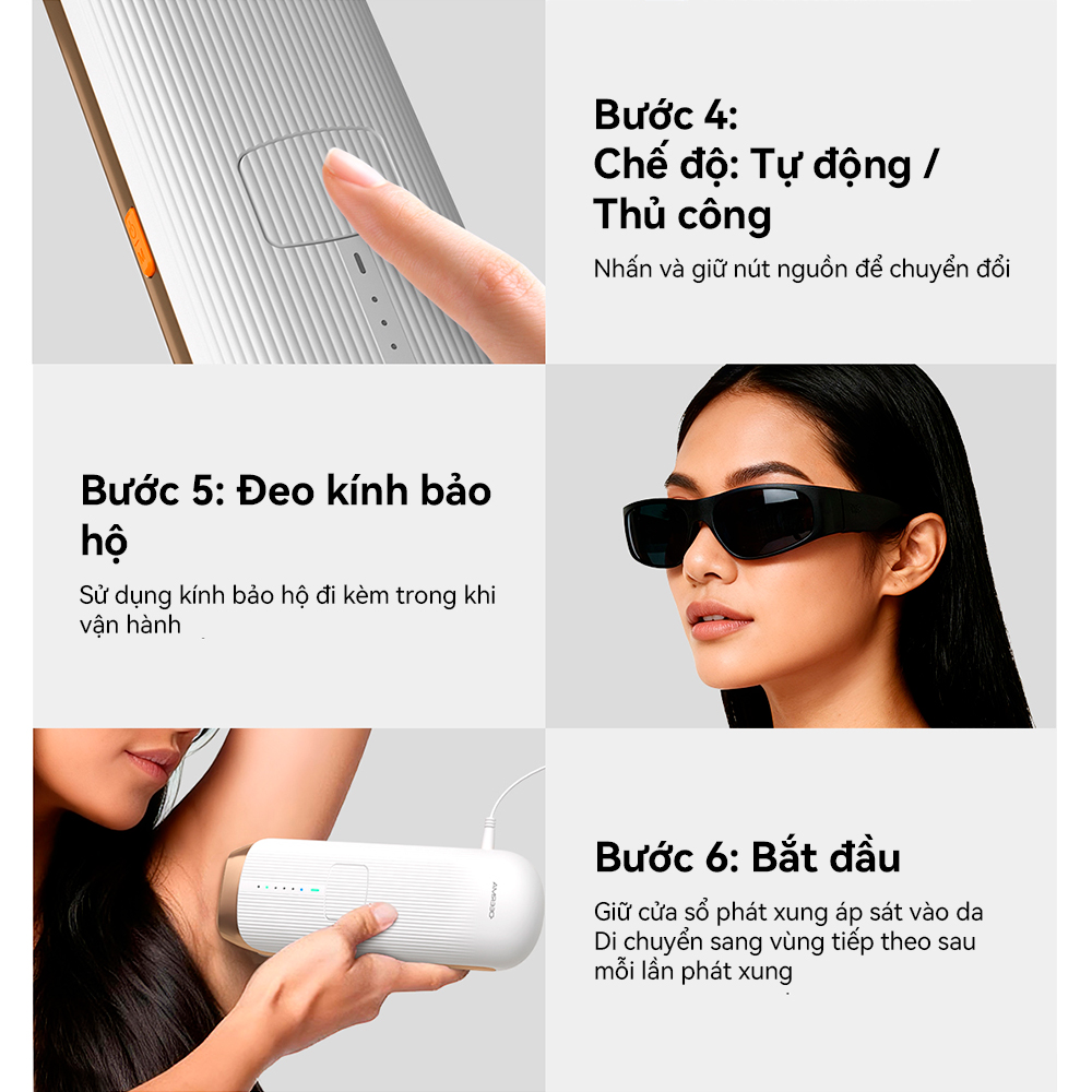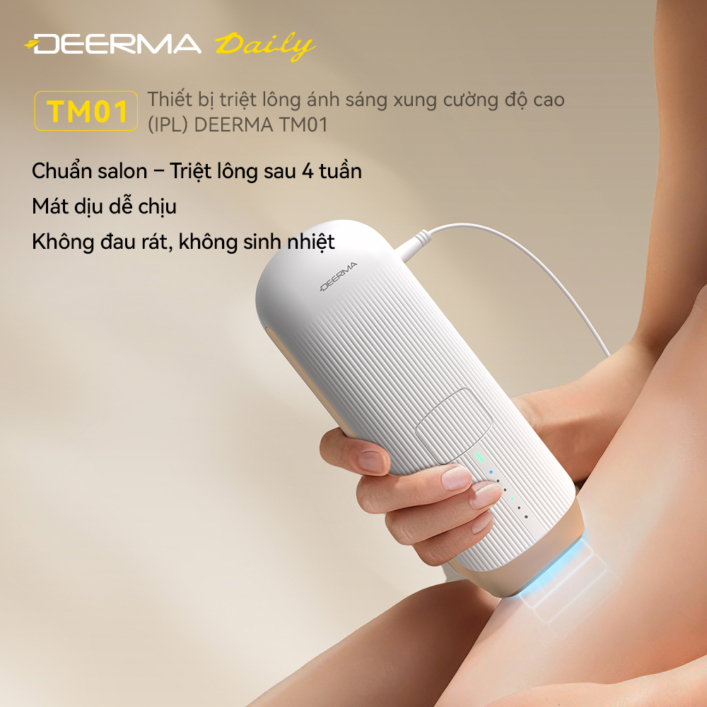 Máy triệt lông Deerma TM01 ứng dụng đột phá từ công nghệ IPL, sử dụng các xung ánh sáng cường độ cao để tác động sâu và chính xác vào gốc nang lông. Quá trình này không chỉ làm gián đoạn hiệu quả chu kỳ tăng trưởng của sợi lông mà còn ngăn ngừa tình trạng mọc lại một cách bền vững theo thời gian. Điểm khác biệt của thiết bị nằm ở khả năng chăm sóc kép: bên cạnh việc loại bỏ vùng lông không mong muốn, các bước sóng ánh sáng còn hỗ trợ kích thích tái tạo, giúp nuôi dưỡng bề mặt da thêm sáng khỏe và trẻ trung. Đây chính là bí quyết hoàn hảo để bạn tự tin sở hữu làn da mịn màng, sạch lông ngay tại nhà.