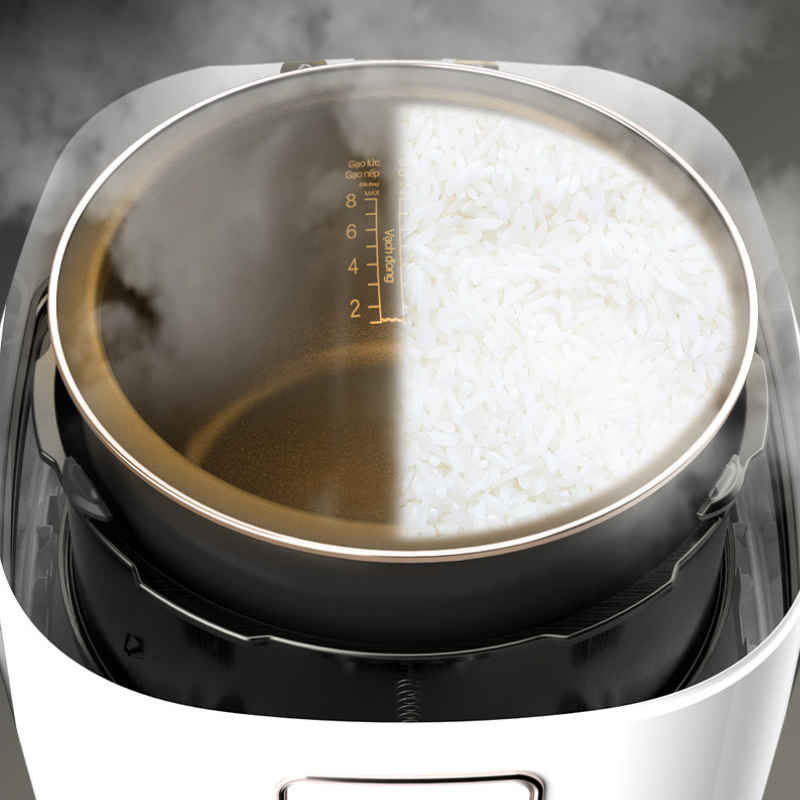 Đặc biệt, nồi cơm cao tần AQUA AQS-RIH401R(W)-VN được trang bị van thoát hơi nước thông minh, giúp điều chỉnh nhiệt lượng một cách nhanh chóng và chính xác. Nhờ đó, hơi nước được kiểm soát tối ưu, thẩm thấu đều vào từng hạt gạo, giúp cơm chín tơi xốp, mềm dẻo và giữ được hương vị thơm ngon tự nhiên. Công nghệ này không chỉ nâng cao chất lượng bữa ăn mà còn giúp cơm luôn đạt độ ngon hoàn hảo trong từng lần nấu.
