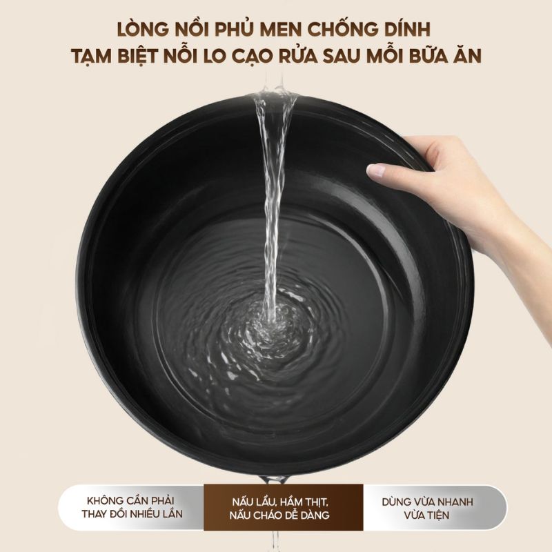 - Lòng nồi chống dính, thuận tiện cho việc vệ sinh.