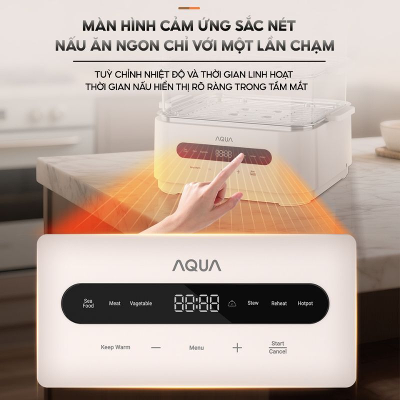 AQUA ASMC-ES101(W) được trang bị màn hình cảm ứng sắc nét với giao diện trực quan, giúp thao tác và điều chỉnh các chế độ nấu trở nên dễ dàng hơn bao giờ hết. Thiết kế giao diện thân thiện hỗ trợ người dùng quan sát rõ ràng thông tin, tùy chỉnh linh hoạt các chức năng chỉ bằng một chạm. Nhờ bố cục hiển thị rõ ràng, mọi thành viên trong gia đình, kể cả người lớn tuổi hay người lần đầu tiếp xúc, đều có thể nhanh chóng làm quen và sử dụng sản phẩm hiệu quả. Điều này góp phần nâng cao trải nghiệm nấu nướng tiện nghi, hiện đại cho căn bếp mỗi ngày.