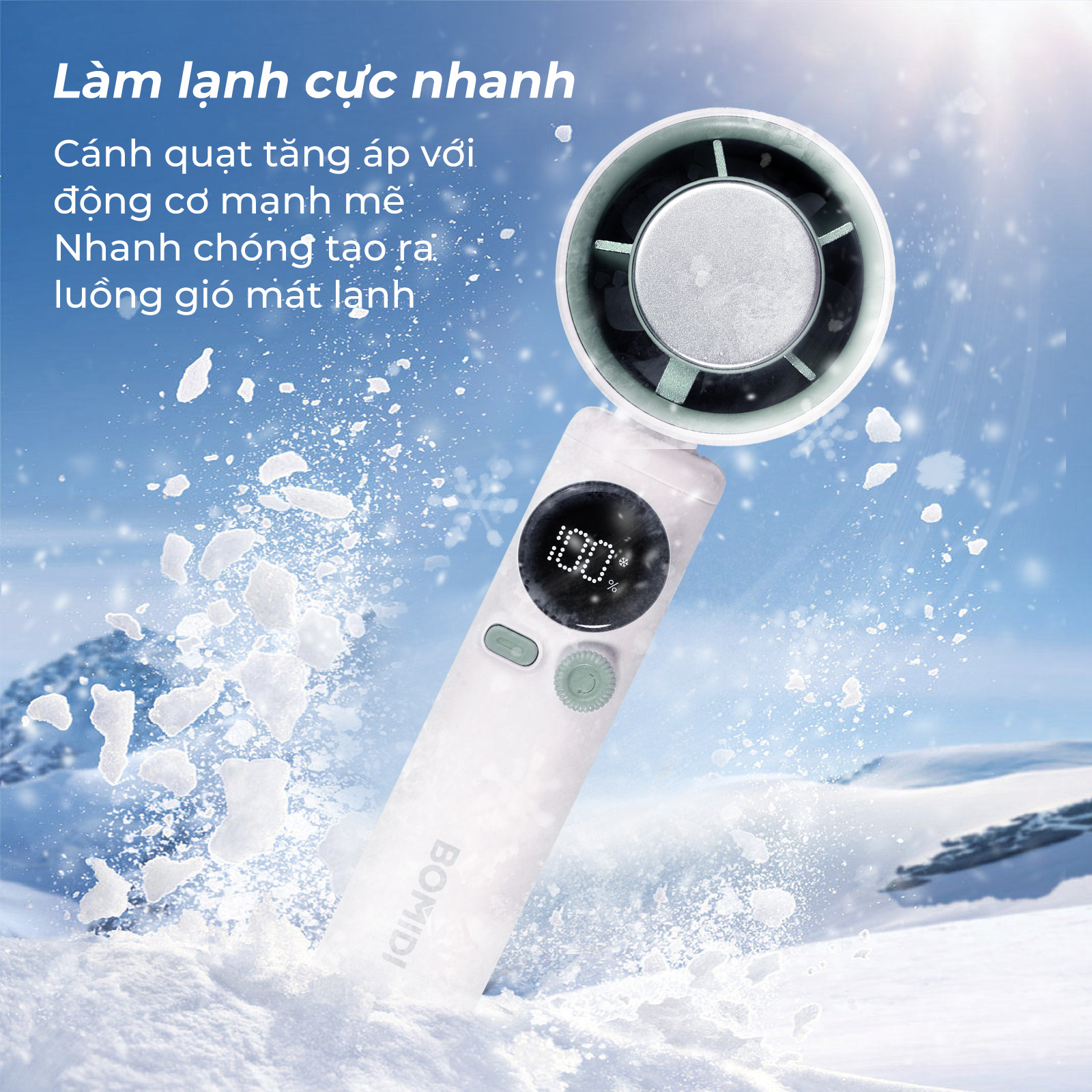 Tính năng hạ nhiệt chuyên sâu trên Bomidi MF01 hỗ trợ tạo luồng khí lạnh nhanh chóng, mang lại cảm giác sảng khoái tức thì trong những ngày thời tiết oi ả. Cơ chế vận hành thông minh này đáp ứng hiệu quả nhu cầu làm mát cấp tốc cho người dùng khi hoạt động ngoài trời, đảm bảo sự thoải mái tối đa dù ở bất kỳ môi trường khắc nghiệt nào.