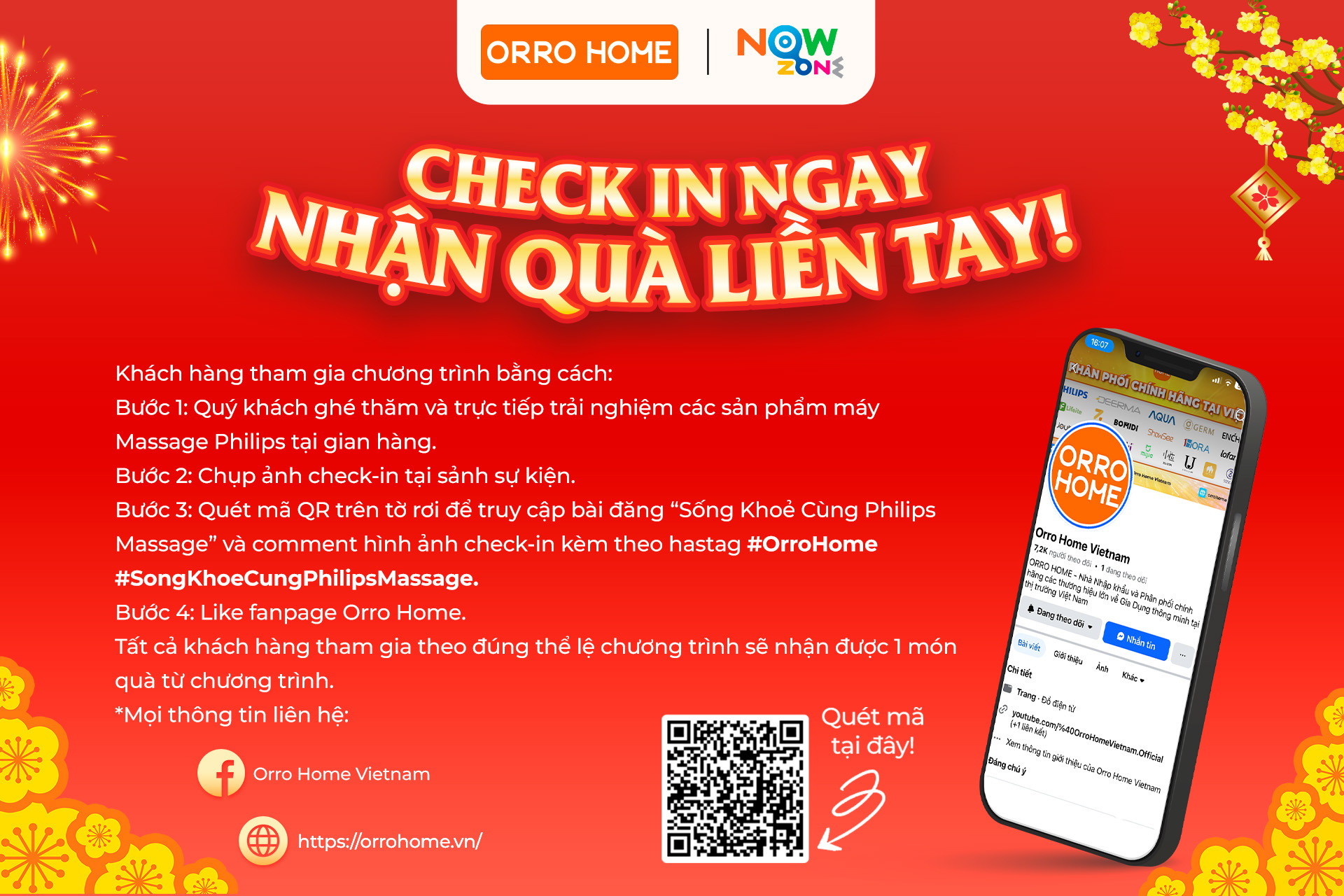 - Bình luận hình ảnh check-in kèm hashtag #OrroHome #SongKhoeCungPhilipsMassage.